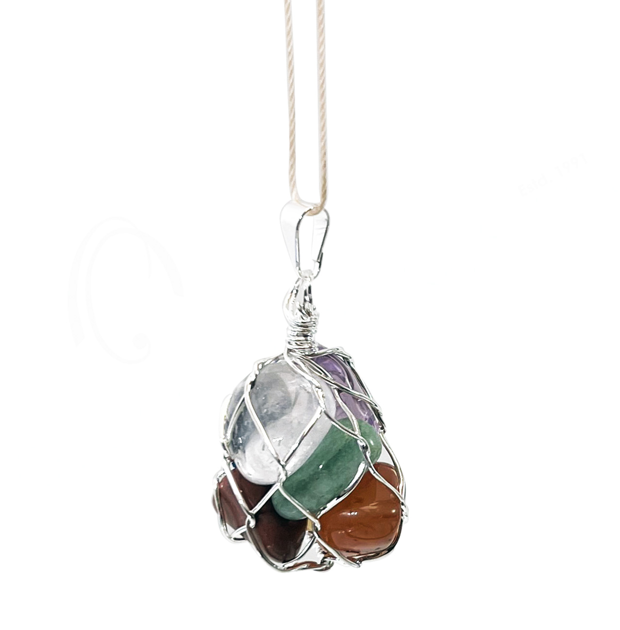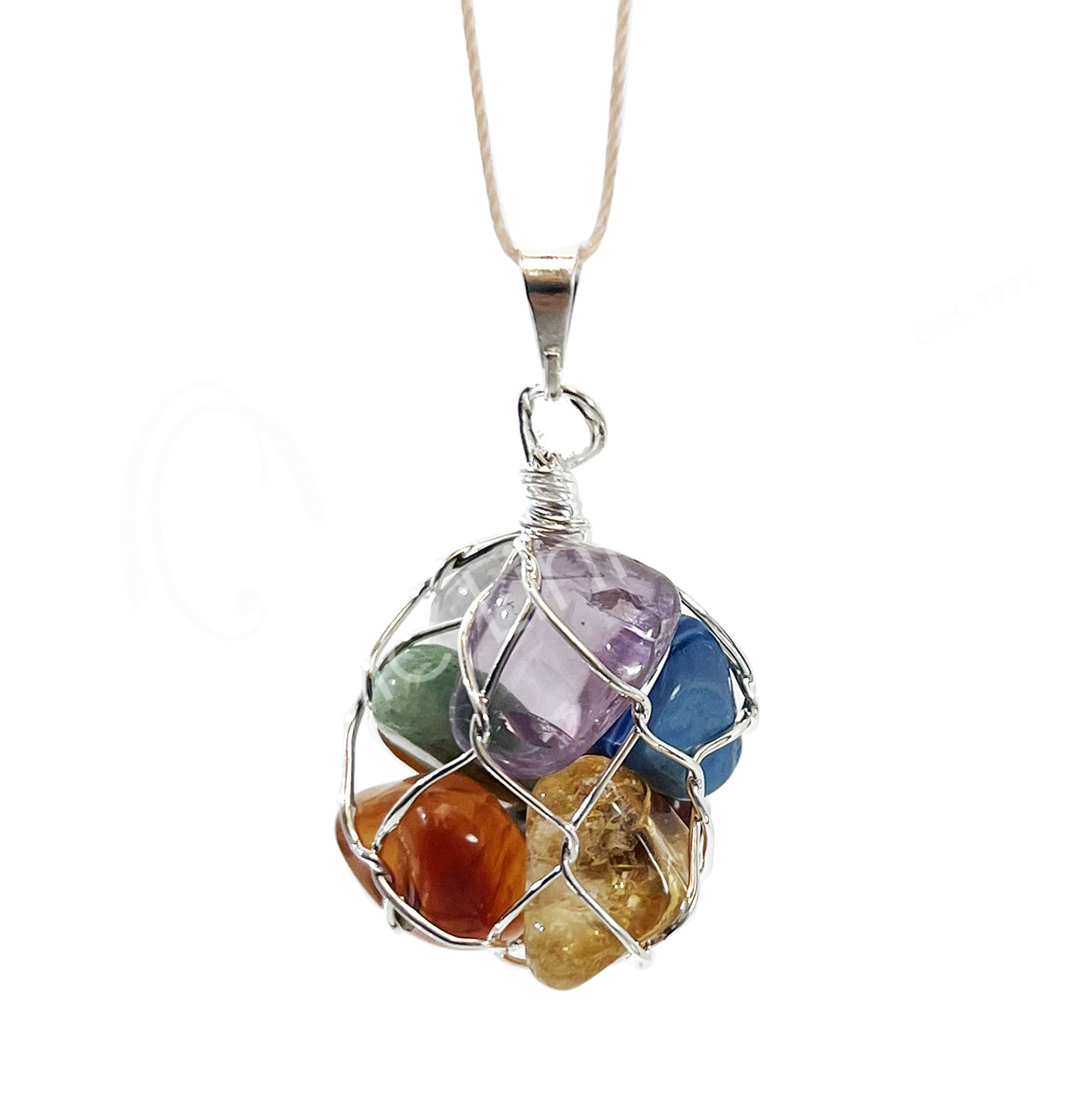 PENDANT – CHAKRA STONES IN NET BAG 1.5-1.75″