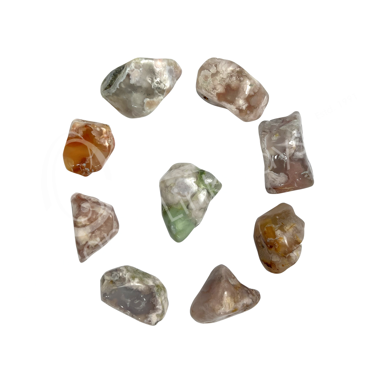 Deprecated: Function Yoast\WP\SEO\Helpers\Request_Helper::is_rest_request is deprecated since version Yoast SEO 23.6! Use wp_is_serving_rest_request instead. in /var/www/html/wp-includes/functions.php on line 6121 Cherry Blossom Agate Tumbled Stones | Oceanic Linkways in NJ