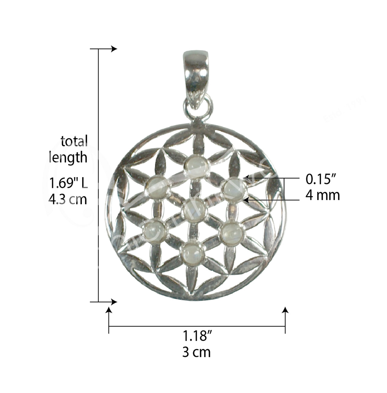 STERLING SILVER – PENDANT FLOWER OF LIFE RAINBOW MOONSTONE 1.25″