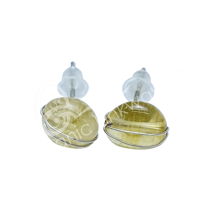 (CLOSE OUT) STERLING SILVER – EARRING STUDS CITRINE WIRE WRAP 7-8 MM