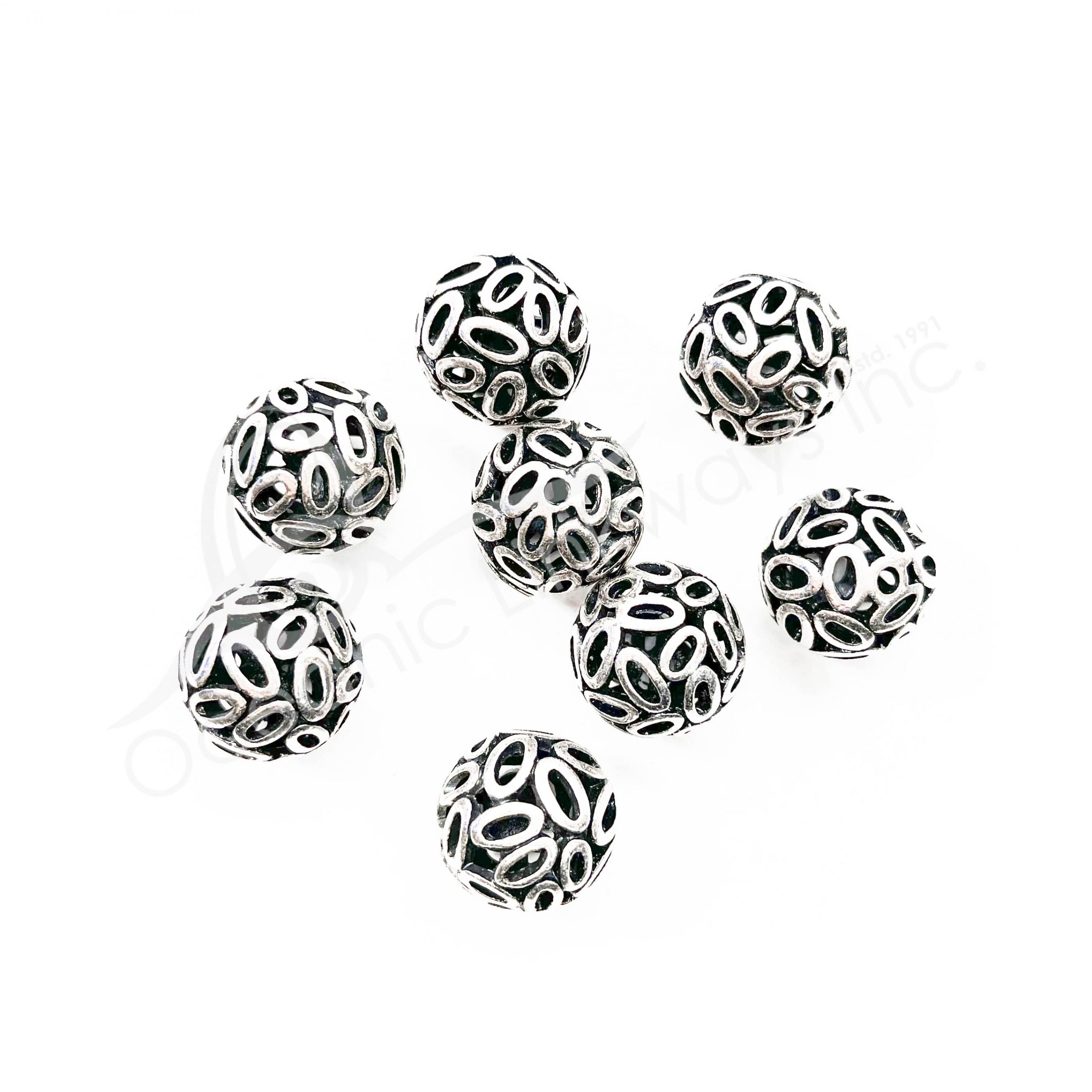 (CLOSE OUT) BEADS – METAL BALL WITH OVAL OPENINGS (PK 20) 17 MM DIA