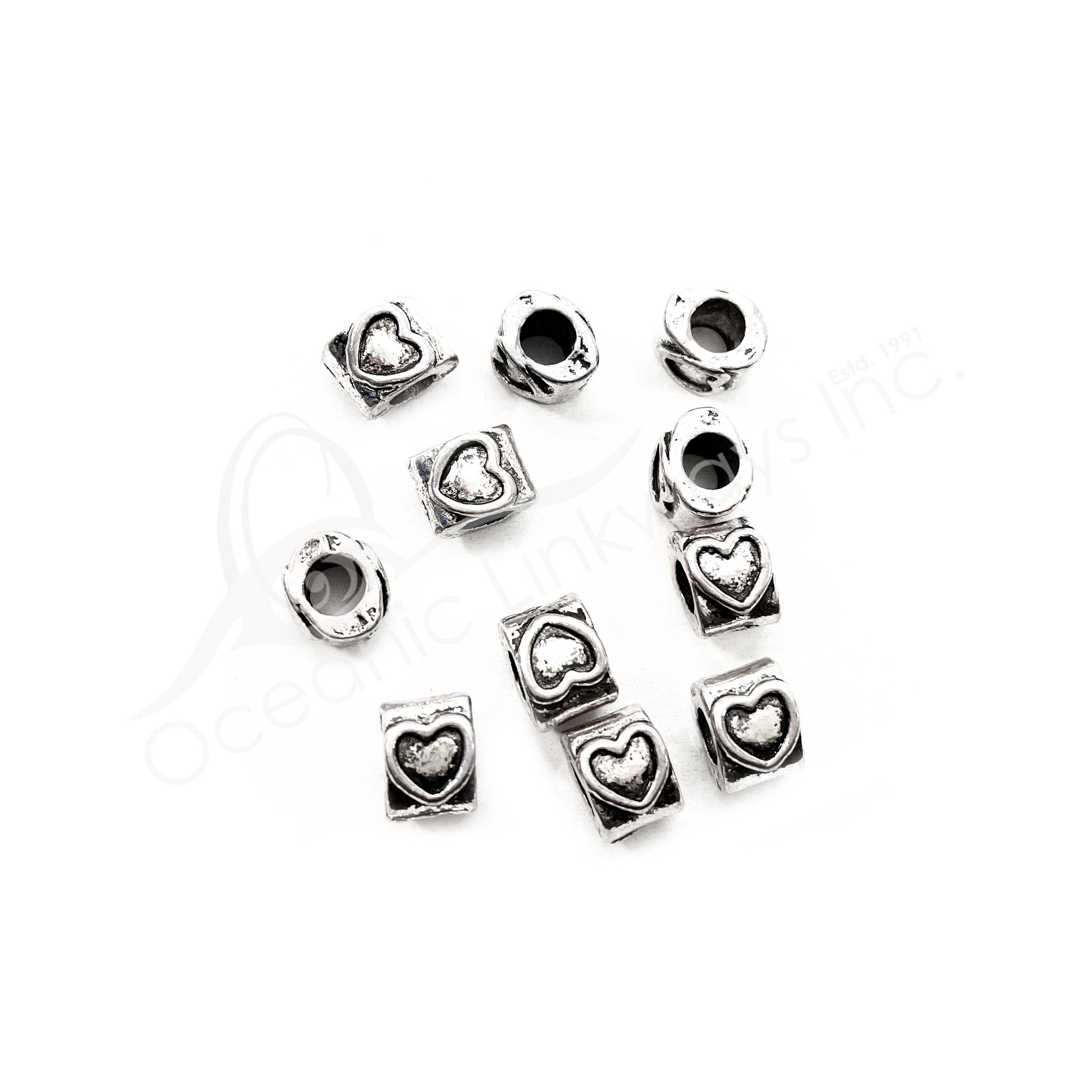 (CLOSE OUT) BEADS – METAL EMBOSSED HEART TUBE (PK 50) 9 MM L X 7 MM W