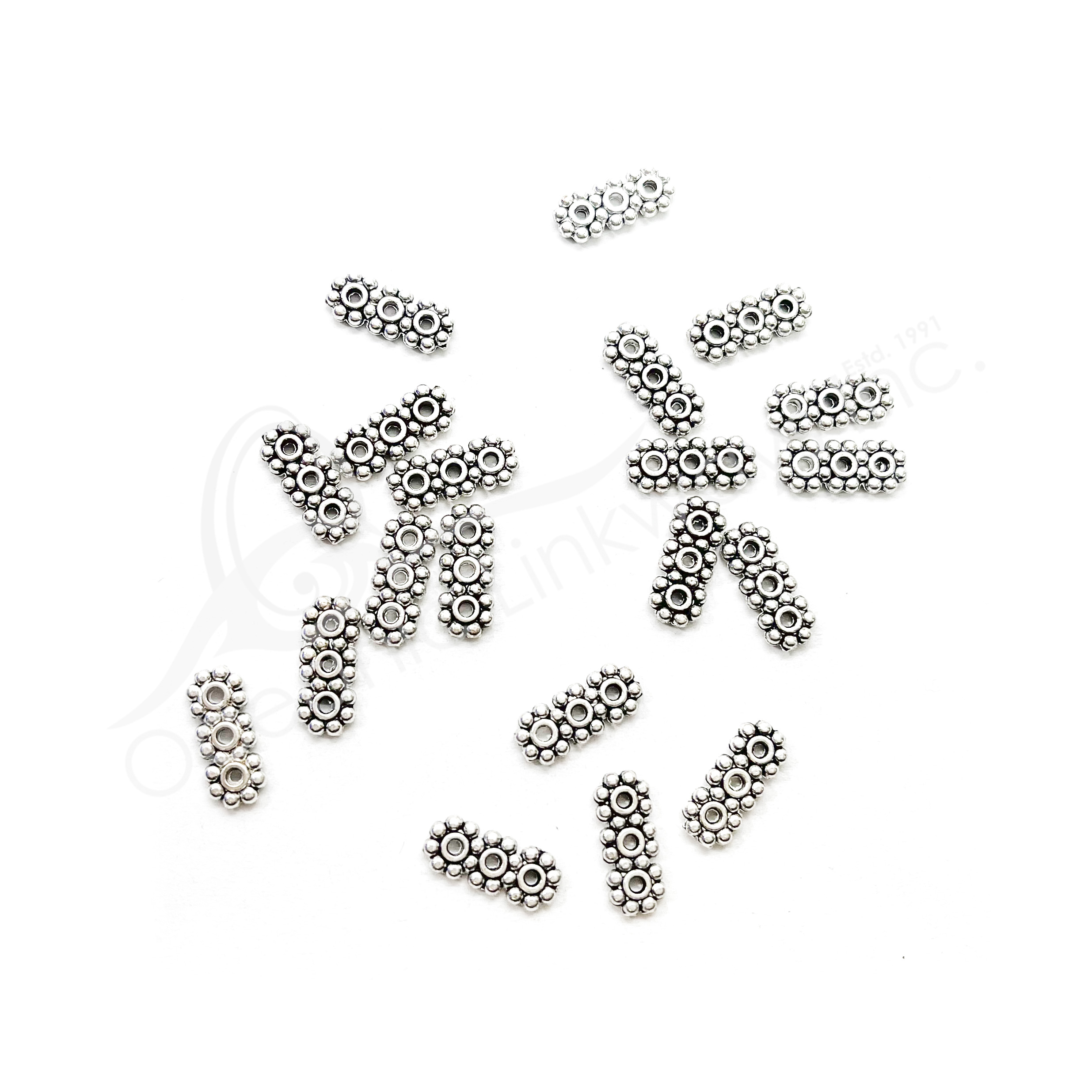 (CLOSE OUT) BEADS – METAL FLOWER SPACER FOR TRIPLE ROW (PK 20) 12 MM L X 2 MM T