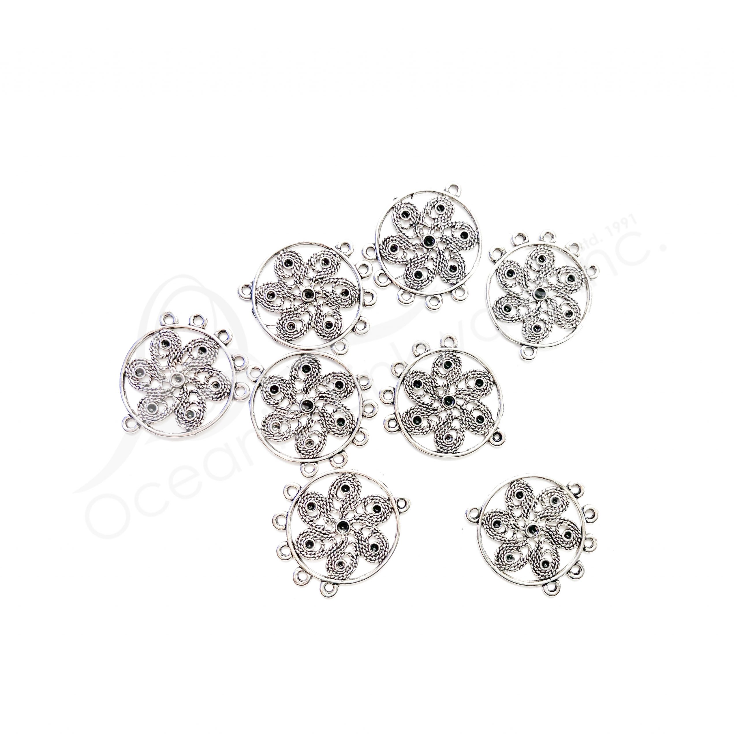(CLOSE OUT) BEADS – METAL FLOWER WITH 5 LOOPS AT BOTTOM (PK 8) 2.5 CM D X 1 MM T