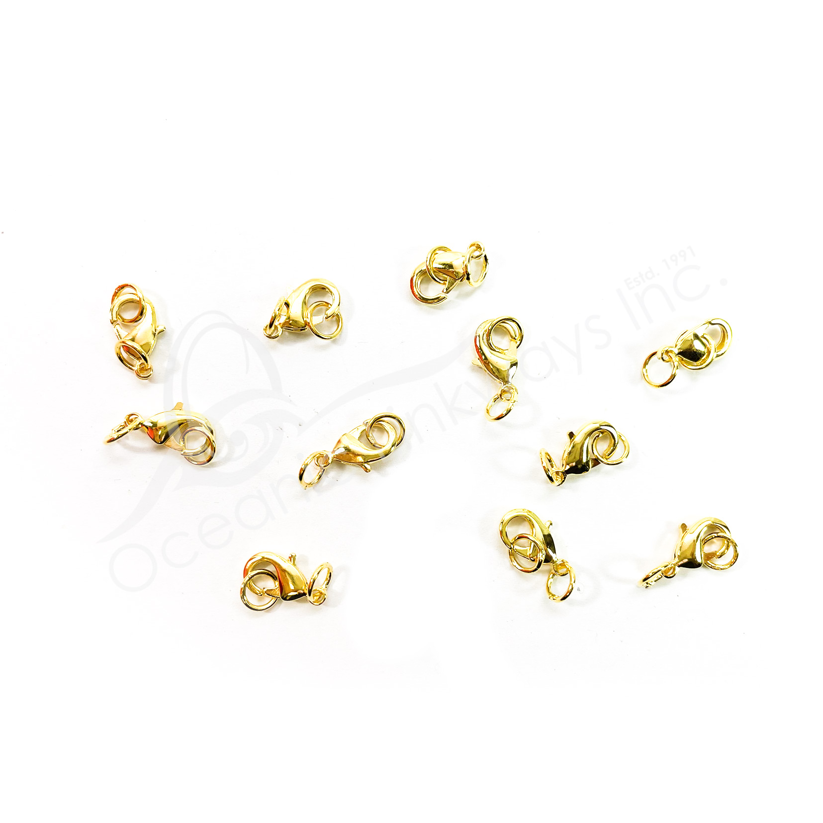 (CLOSE OUT) BEADS – METAL GOLD COLOR LOBSTER CLASP (PK 50) 15 MM L (HOOKS)