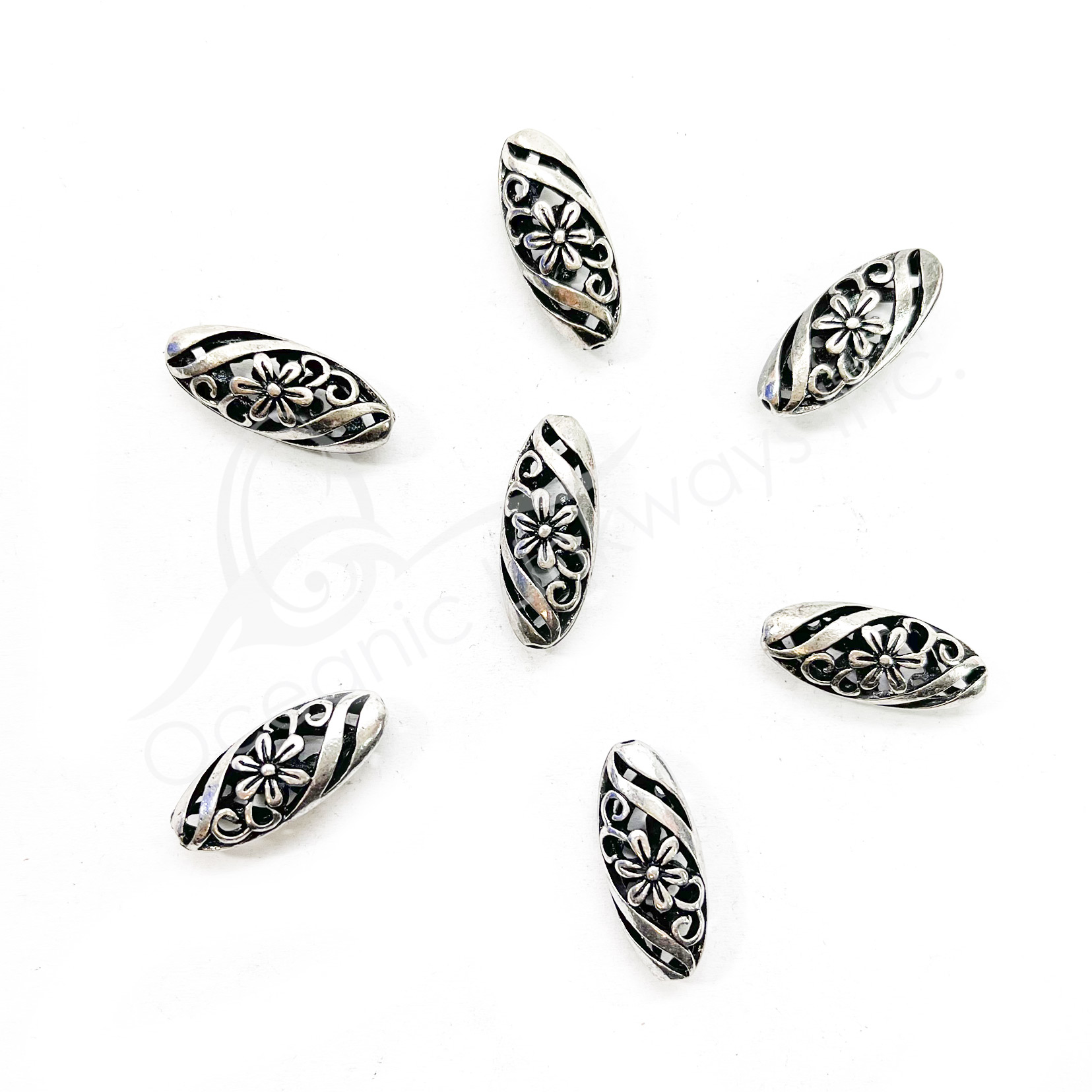 Deprecated: Function Yoast\WP\SEO\Helpers\Request_Helper::is_rest_request is deprecated since version Yoast SEO 23.6! Use wp_is_serving_rest_request instead. in /var/www/html/wp-includes/functions.php on line 6121 (CLOSE OUT) BEADS - METAL LONG OVAL WITH FLOWER (PK 20) 22 MM L X 6 MM T | Oceanic Linkways Inc - Wholesaler of Gemstones, Minerals, Jewelry and More!