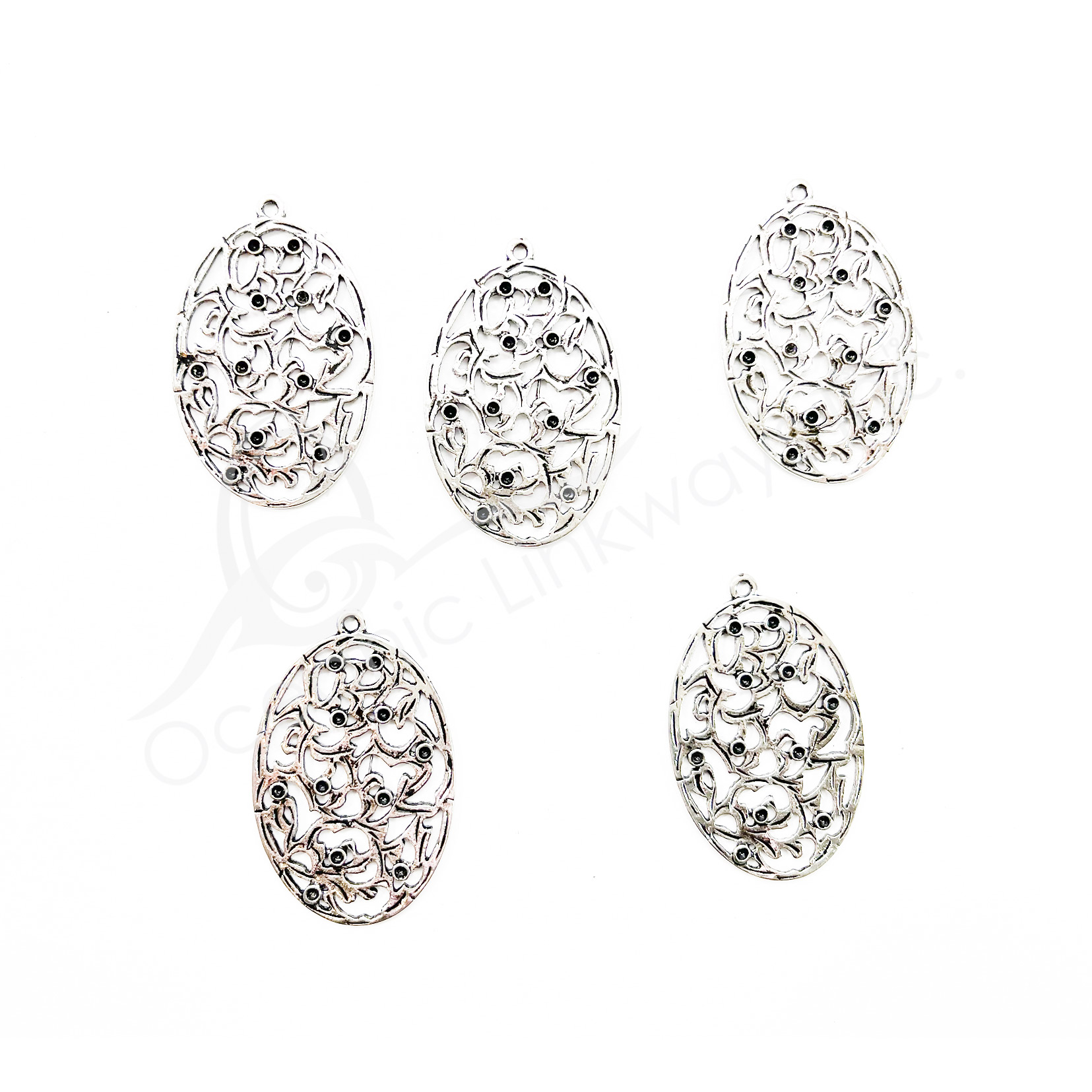 (CLOSE OUT) BEADS – METAL OVAL WITH STONE SETTINGS (PK 20) 1.5”L X 1 MM T (BEAD OR PENDANT)