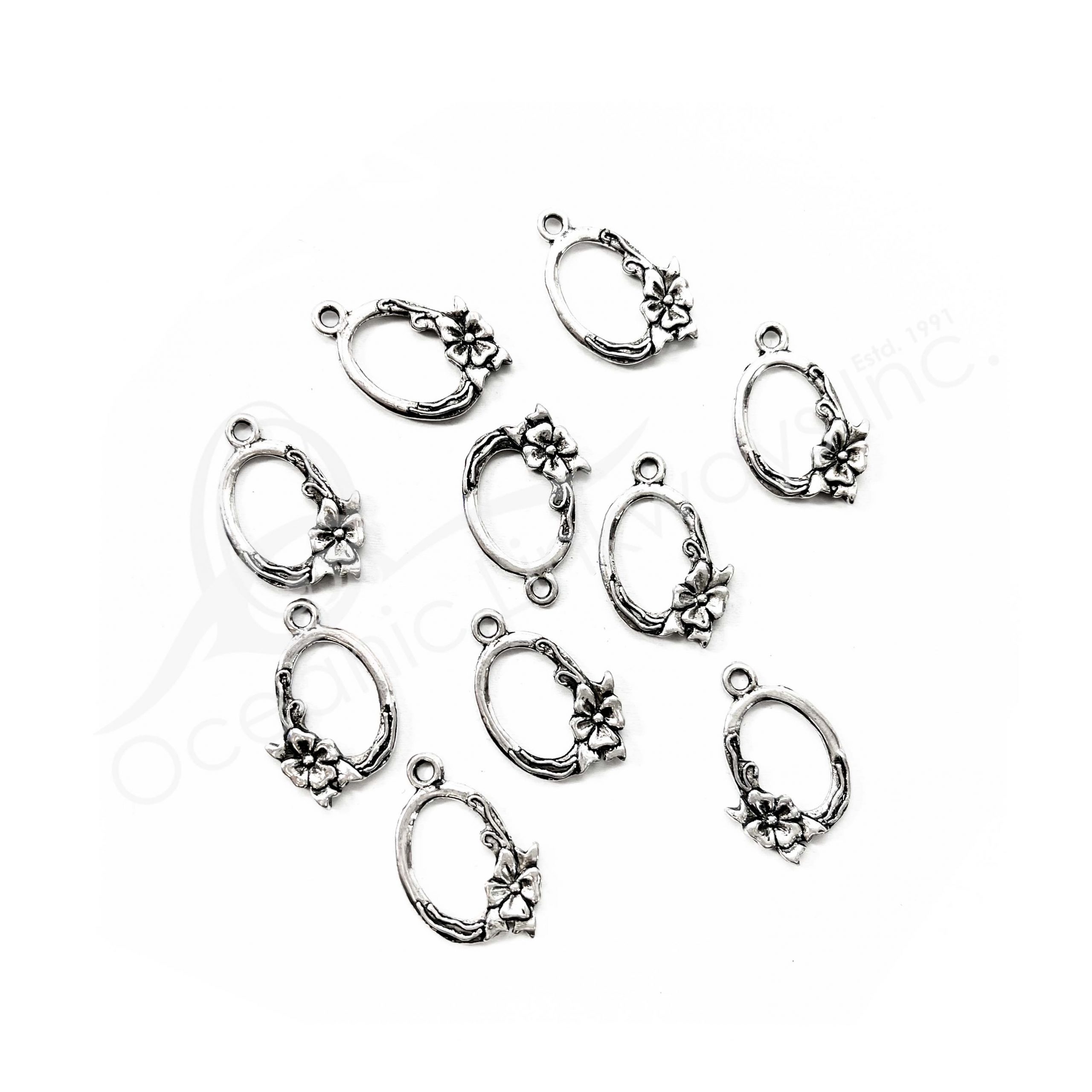 (CLOSE OUT) BEADS – METAL PENDANT WITH FLOWER (PK 50 PAIRS) 2 CM L X 1 MM T