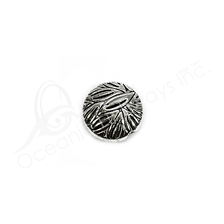 (CLOSE OUT) BEADS – METAL ROUND FLAT WITH LEAVES (PK 16) 9 MM D X 3 MM T