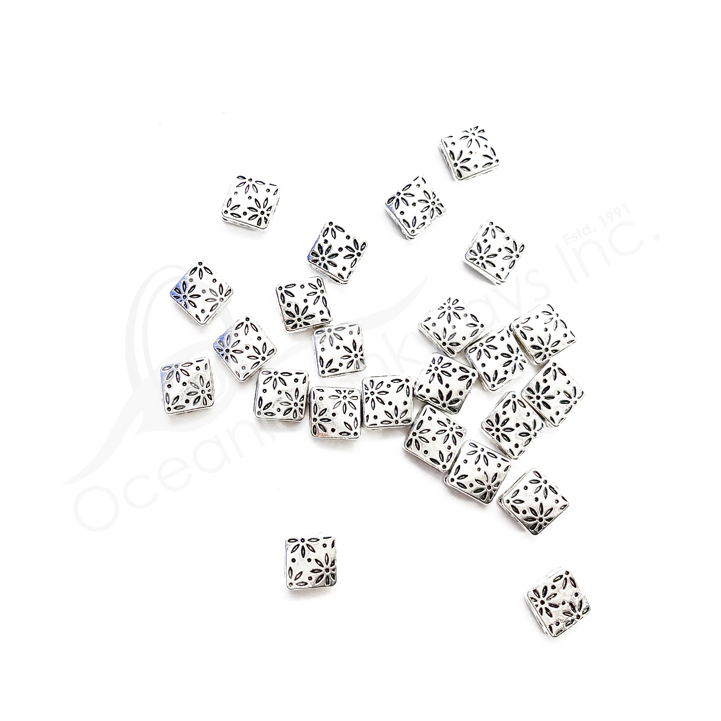 Deprecated: Function Yoast\WP\SEO\Helpers\Request_Helper::is_rest_request is deprecated since version Yoast SEO 23.6! Use wp_is_serving_rest_request instead. in /var/www/html/wp-includes/functions.php on line 6121 (CLOSE OUT) BEADS - METAL SQUARE FLAT WITH FLOWERS (PK 24) 7 MM W | Oceanic Linkways Inc - Wholesaler of Gemstones, Minerals, Jewelry and More!