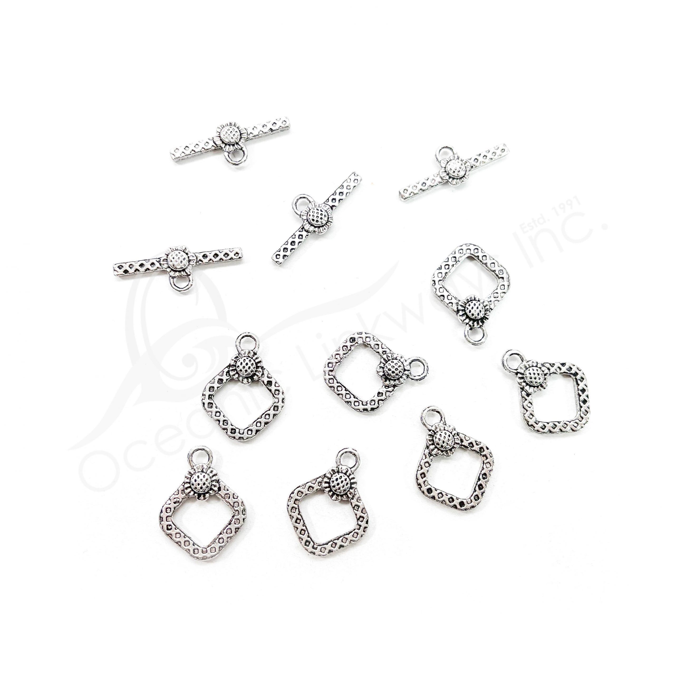 (CLOSE OUT) BEADS – METAL SQUARE TOGGLE CLASP WITH FLOWER (PK 100 PAIRS) 1.5 CM W X 2 MM T