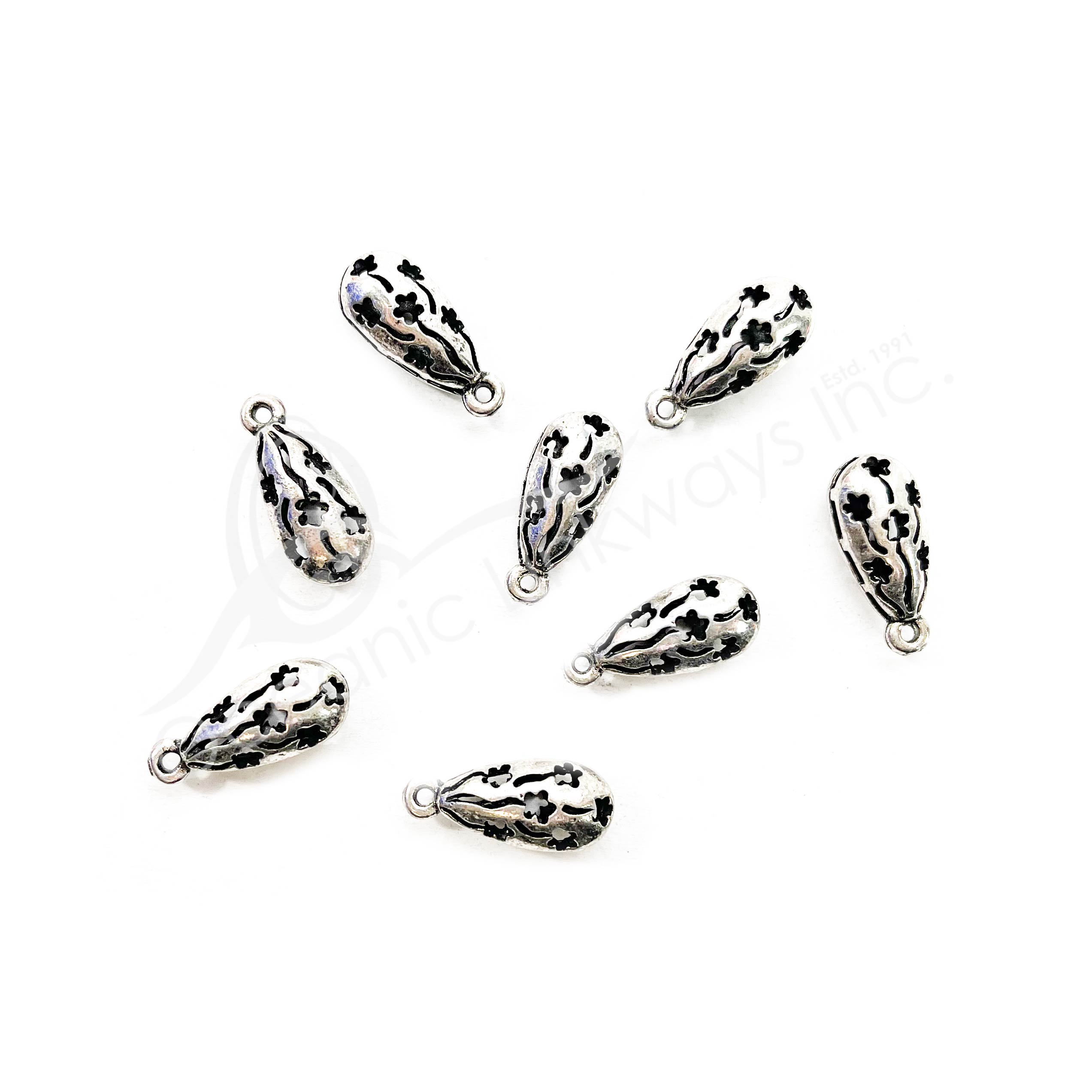 (CLOSE OUT) BEADS – METAL TEARDROP CHARM WITH STARS (PK 20) 0.75”L X 7 MM T