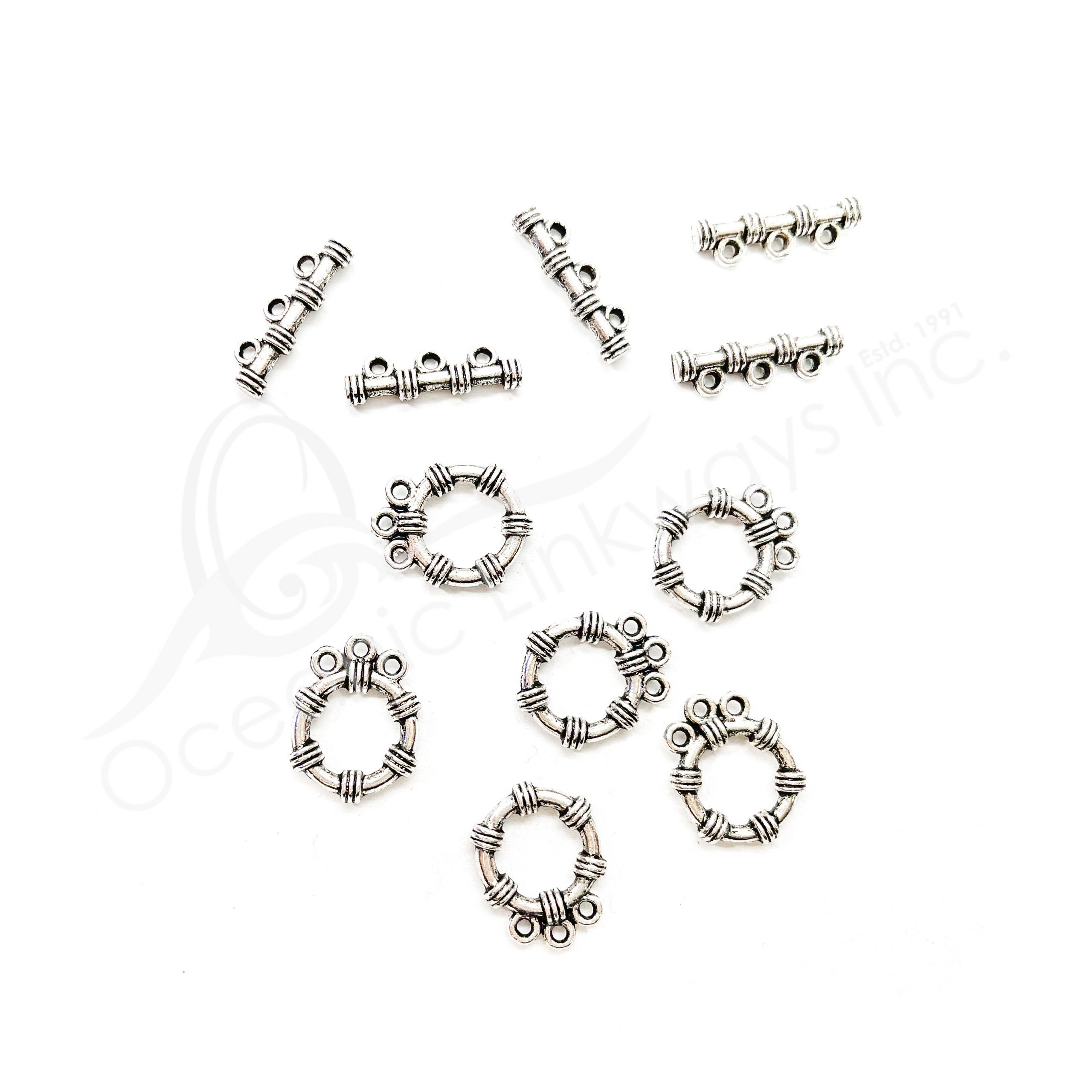 (CLOSE OUT) BEADS – METAL TOGGLE CLASP FOR TRIPLE ROW (PK 50 PAIRS) 13 MM D X 2 MM T