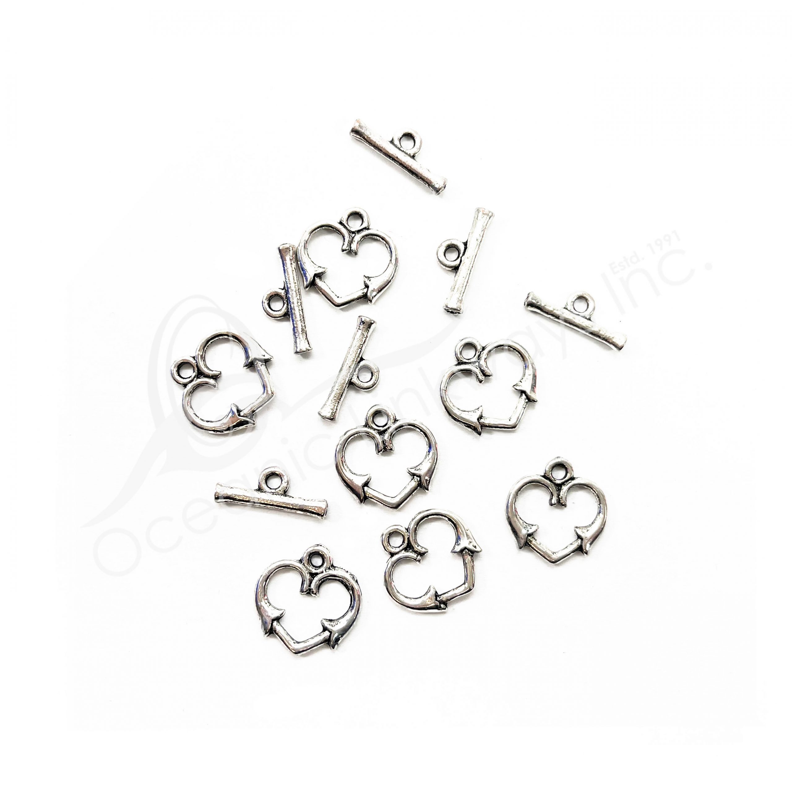 (CLOSE OUT) BEADS – METAL TOGGLE CLASP HEART (PK 10 PAIRS) 1.5 CM W X 1 MM T