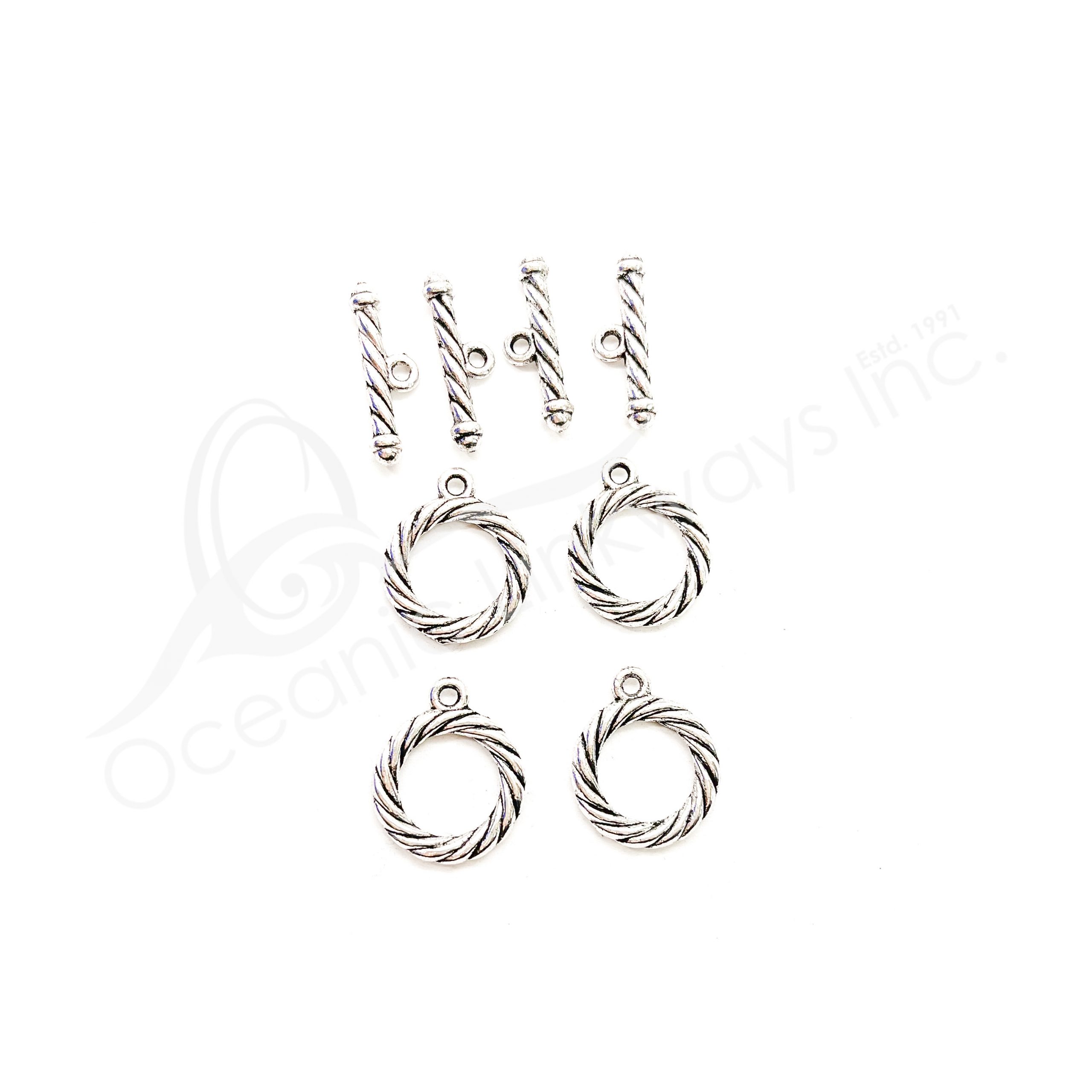 (CLOSE OUT) BEADS – METAL TOGGLE CLASP SWIRL (PK 4 PAIRS) 2 CM D X 3 MM T