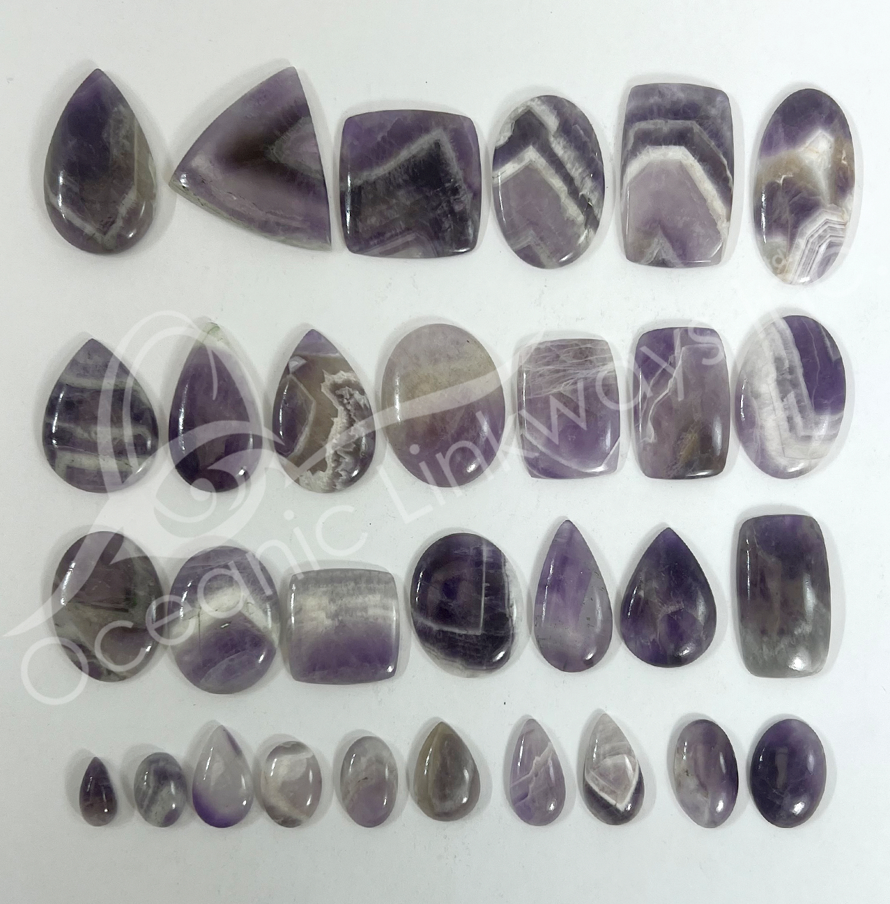 (CLOSE OUT) CABOCHONS – AMETHYST, CHEVRON MIXED SHAPES 20-55 MM