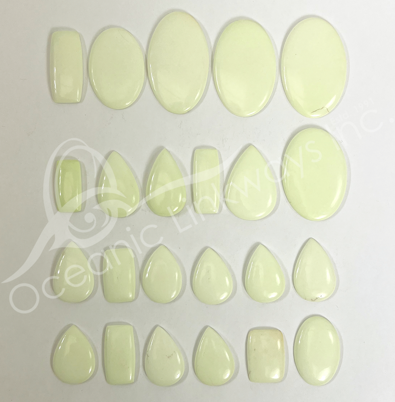 Deprecated: Function Yoast\WP\SEO\Helpers\Request_Helper::is_rest_request is deprecated since version Yoast SEO 23.6! Use wp_is_serving_rest_request instead. in /var/www/html/wp-includes/functions.php on line 6121 Mixed Shape Lemon Chrysoprase Cabochons | Oceanic Linkways Inc - Wholesaler of Gemstones, Minerals, Jewelry and More!