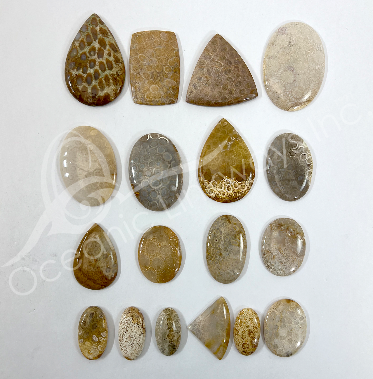 (CLOSE OUT) CABOCHONS – FOSSIL CORAL MIXED SHAPES 20-60 MM