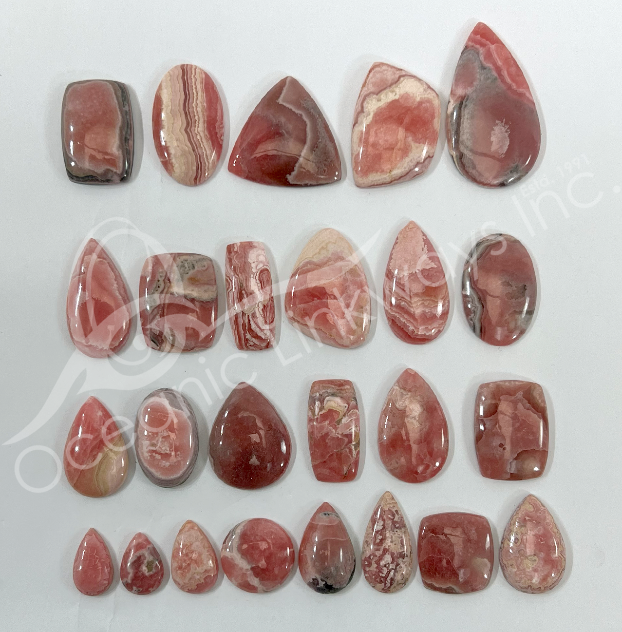 (CLOSE OUT) CABOCHONS – RHODOCHROSITE MIXED SHAPES 15-50 MM
