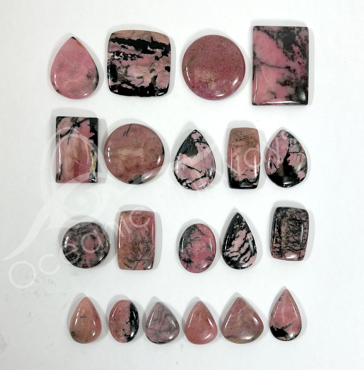 (CLOSE OUT) CABOCHONS – RHODONITE MIXED SHAPES 20-40 MM