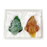 (CLOSE OUT) CARVING – FROG PROSPERITY GREEN AVENTURINE & RED AGATE (PK 2) 2 X 1″H