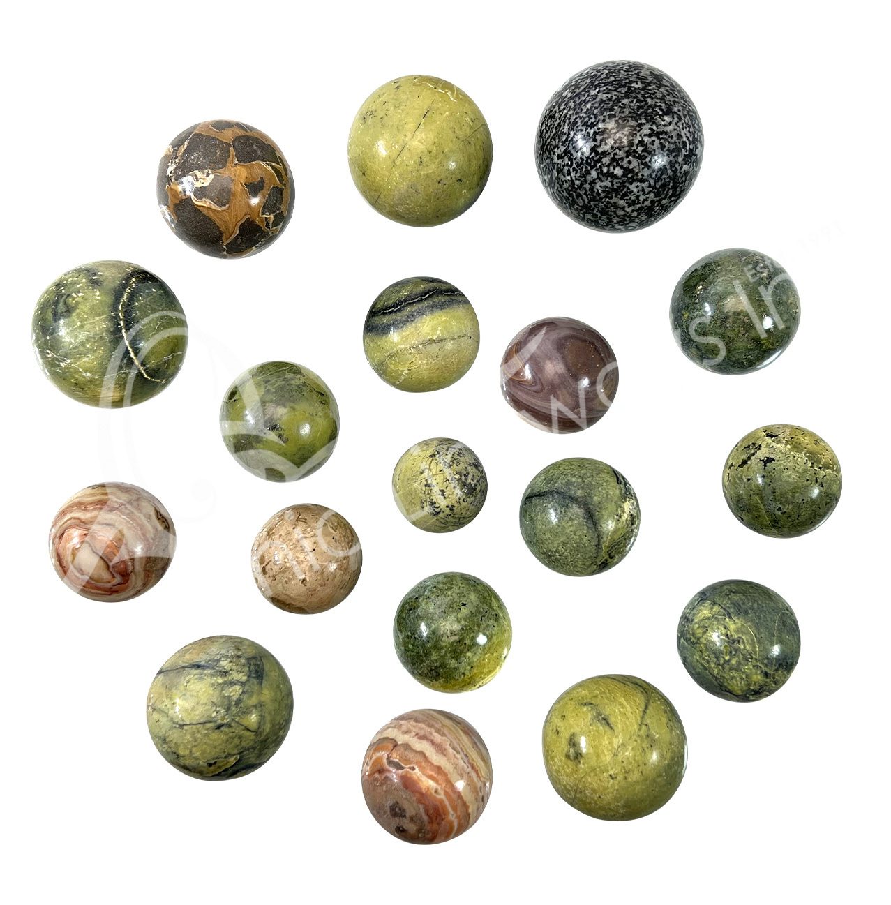Deprecated: Function Yoast\WP\SEO\Helpers\Request_Helper::is_rest_request is deprecated since version Yoast SEO 23.6! Use wp_is_serving_rest_request instead. in /var/www/html/wp-includes/functions.php on line 6121 (CLOSE OUT) SPHERE - MIXED STONES (SERPENTINE, POLYCHROME JASPER, MARBLE) 1.25-2.75" | Oceanic Linkways Inc - Wholesaler of Gemstones, Minerals, Jewelry and More!