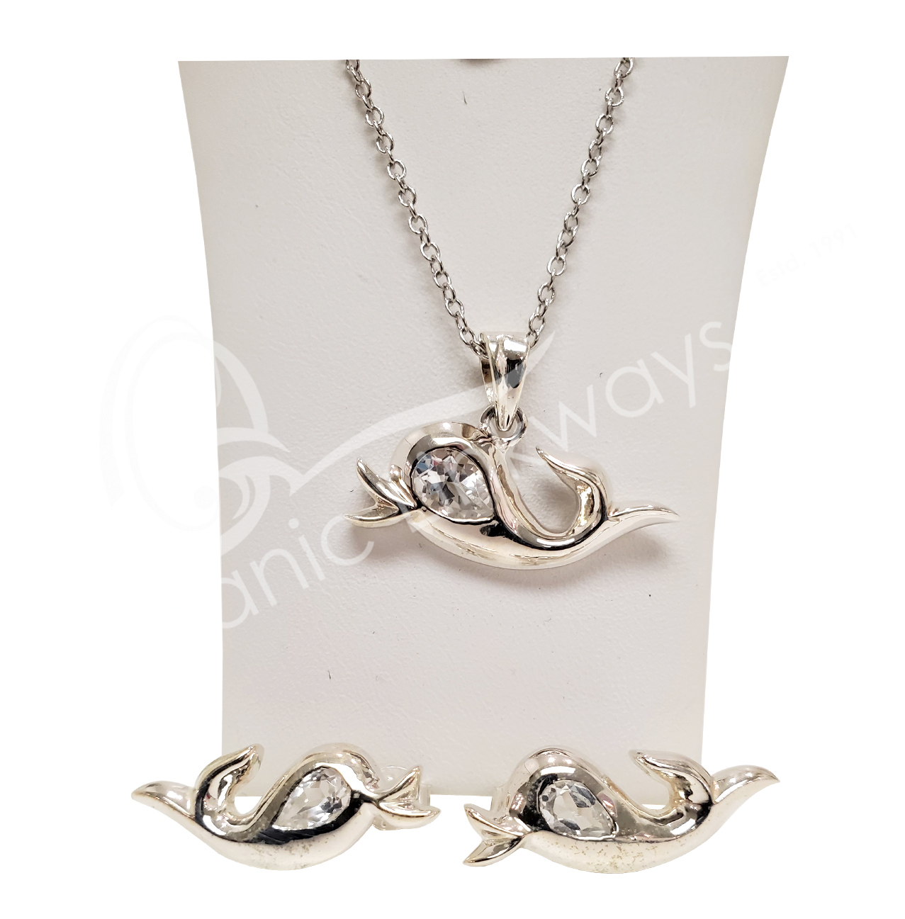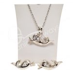 (CLOSE OUT) STERLING SILVER – SET EARRINGS & PENDANT DOLPHIN CRYSTAL