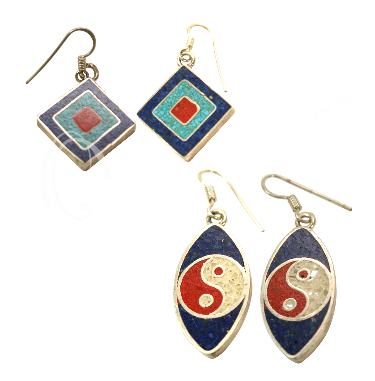 (CLOSE OUT) STERLING SILVER – EARRINGS INLAY MIXED DESIGNS