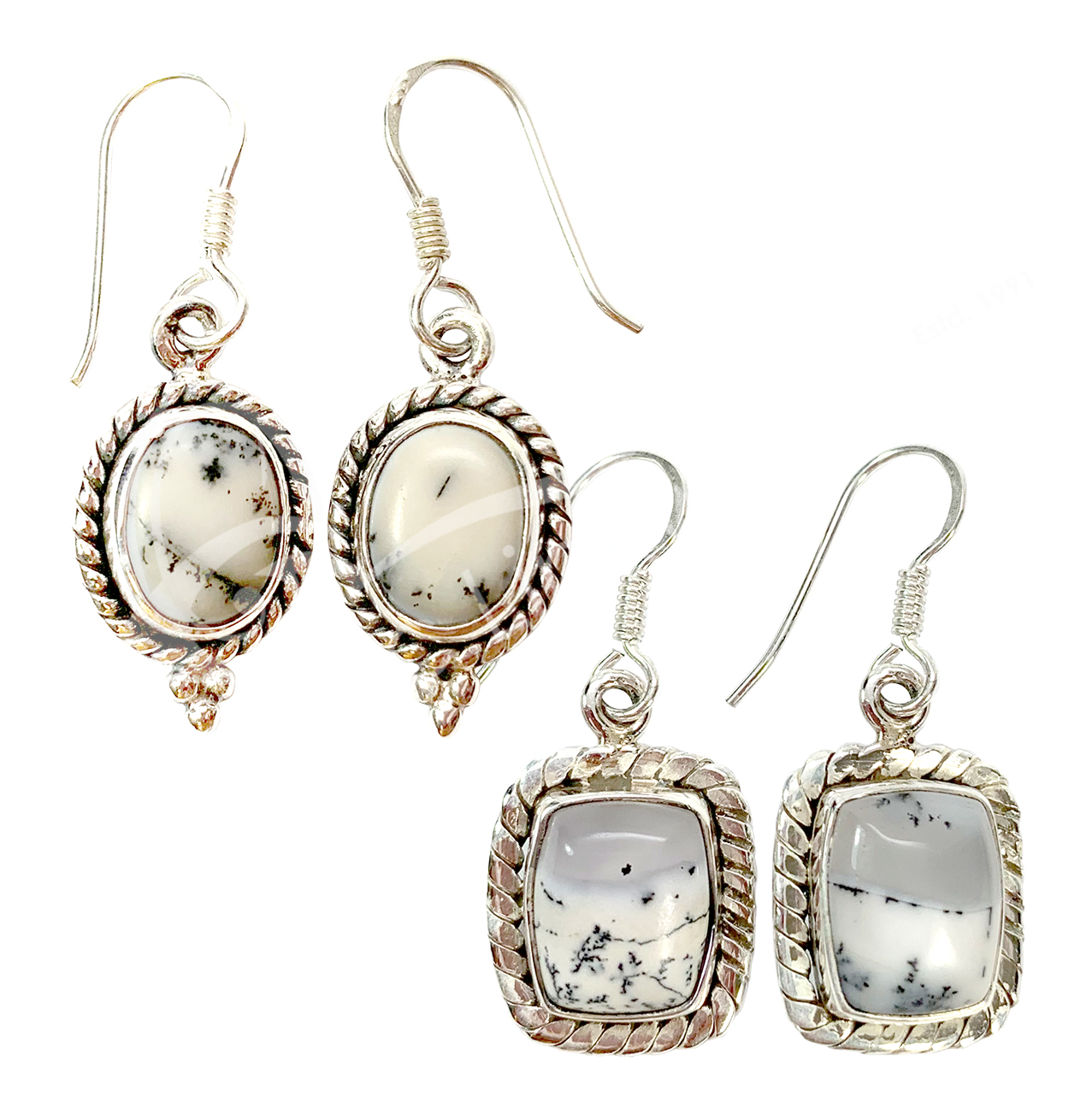 (CLOSE OUT) STERLING SILVER – EARRINGS DENDRITIC OPAL (MIXED SHAPES)