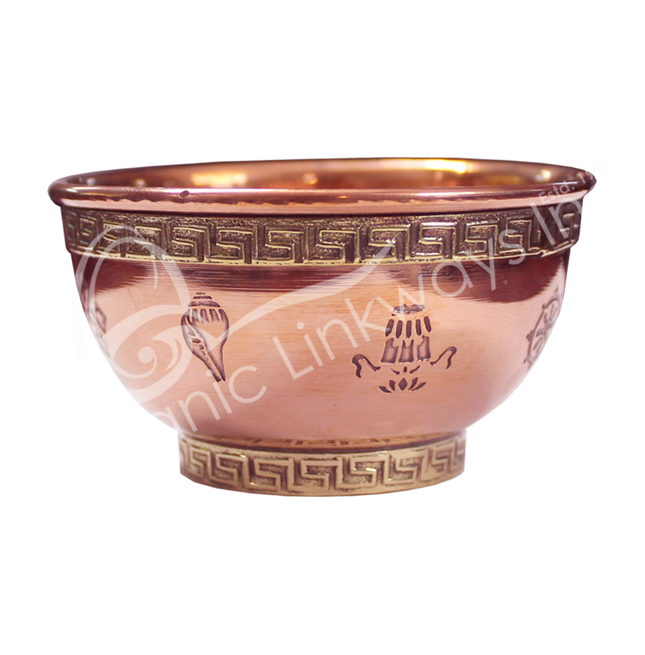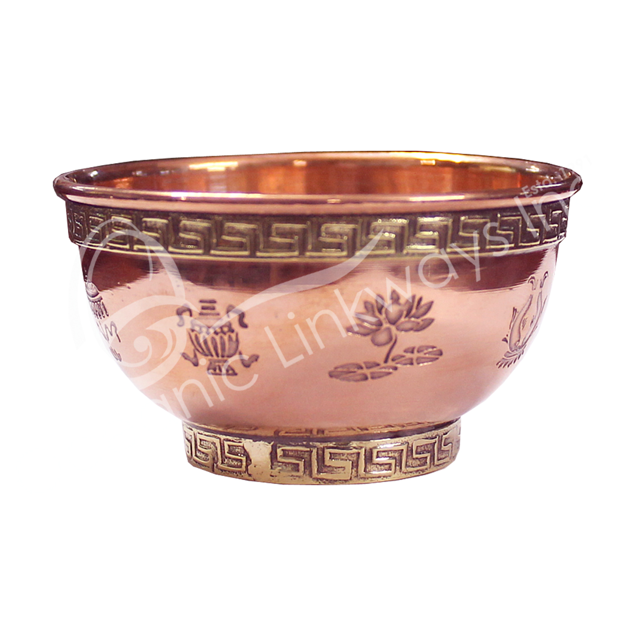 OFFERING BOWL – COPPER 8 AUSPICIOUS SYMBOL 3″DIA