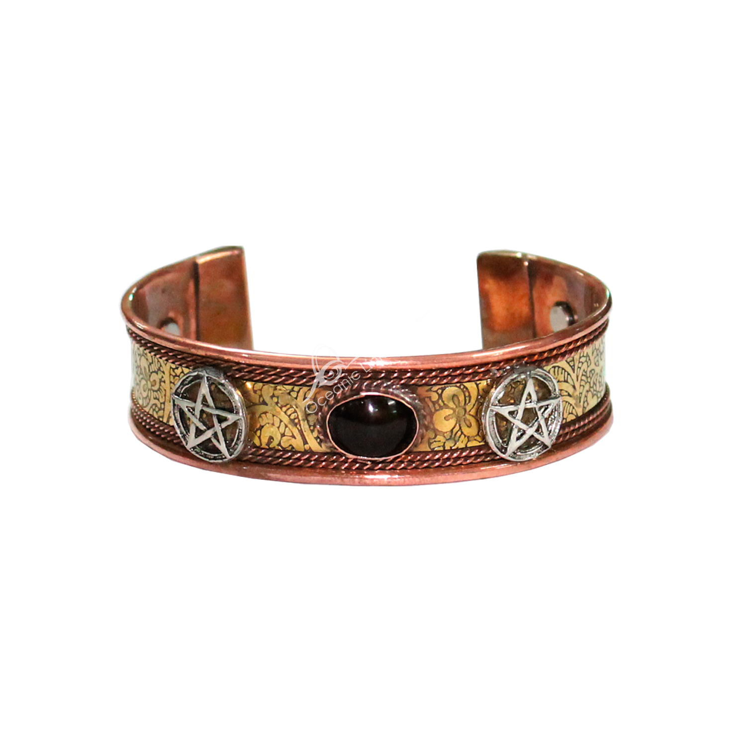 BRACELET – COPPER PENTACLE WITH BLACK STONE 2.75″DIA. X 1″W