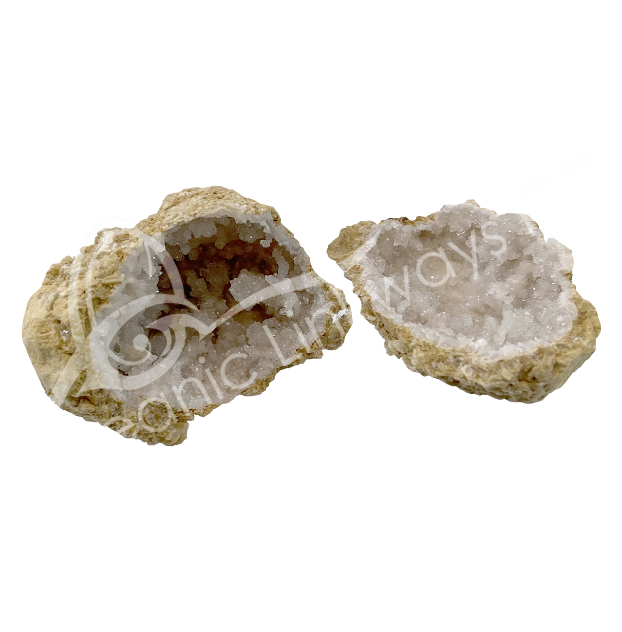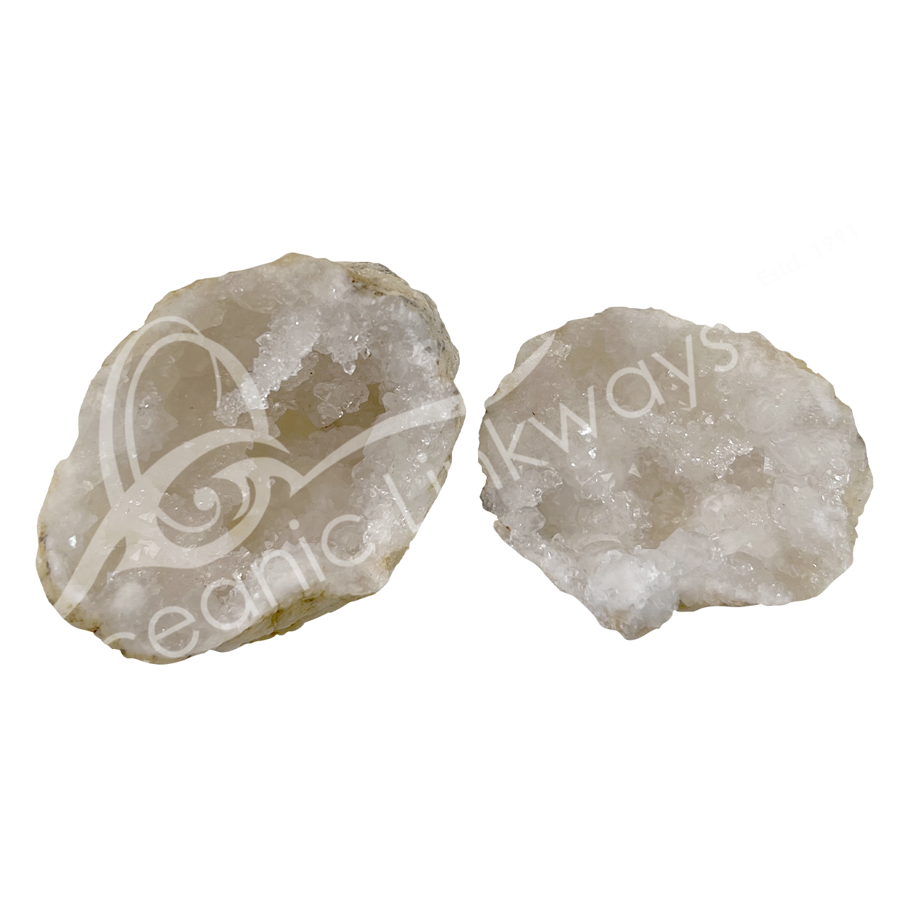 GEODE – CALCITE, WHITE CRACKED (PAIR) 1.5-2.5″