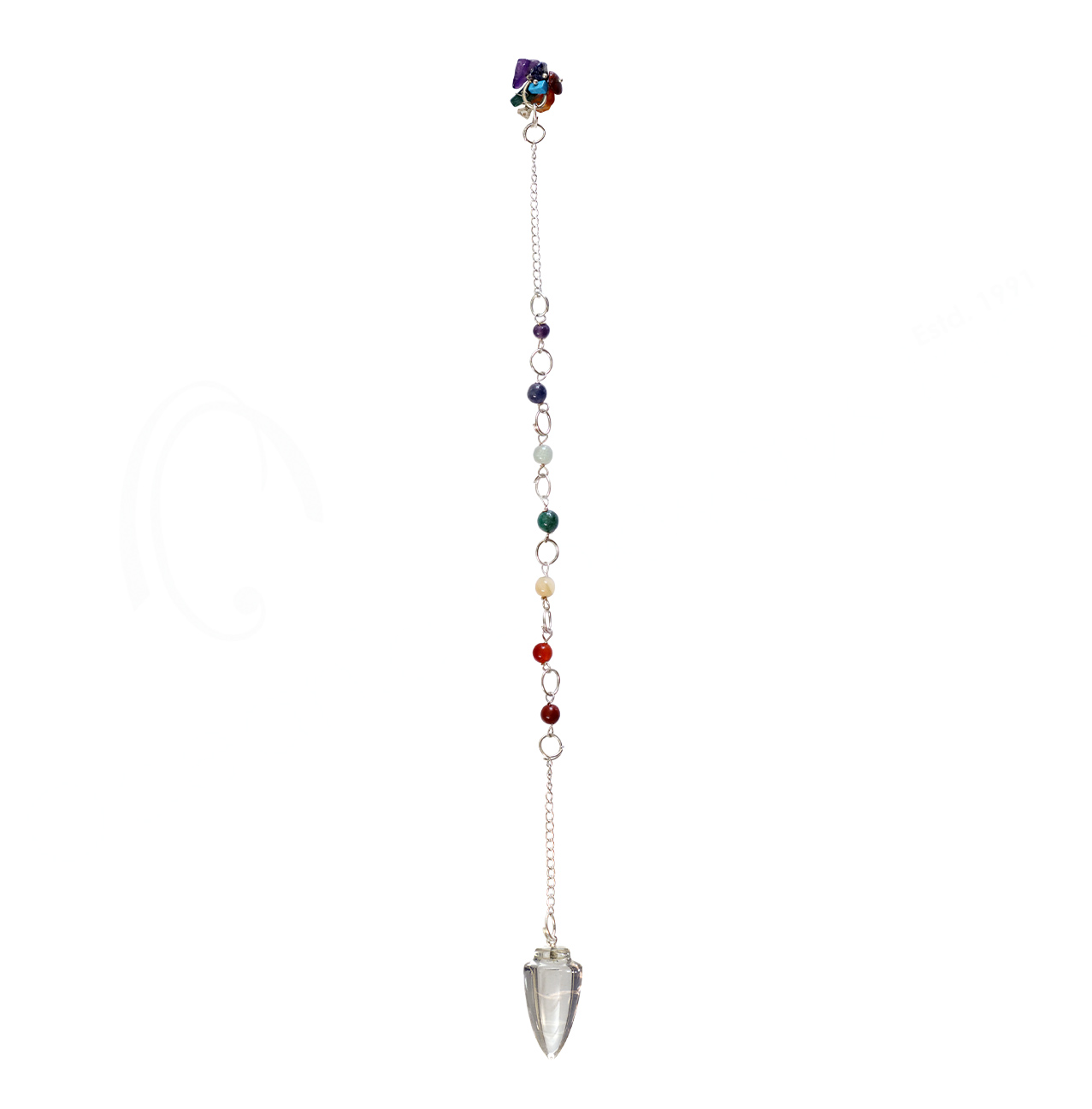 PENDULUM – TEARDROP CRYSTAL QUARTZ CHAKRA CHAIN 10″L