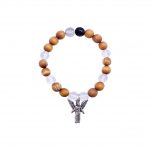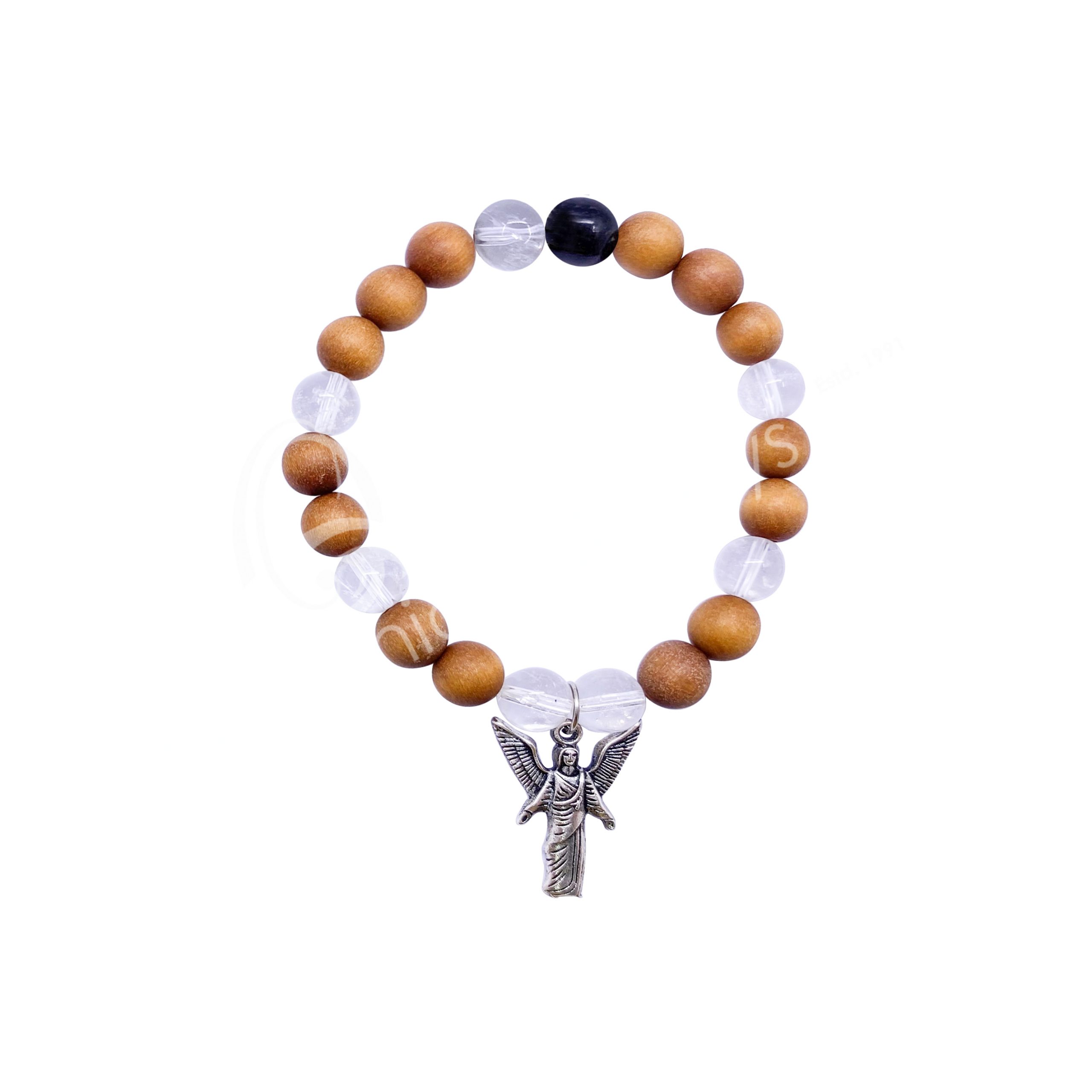 (CLOSE OUT) BRACELET – WOOD ARCHANGEL RAZIEL SPIRITUAL UNDERSTANDING CRYSTAL QUARTZ (8-8.5 MM) 7.15-7.25″