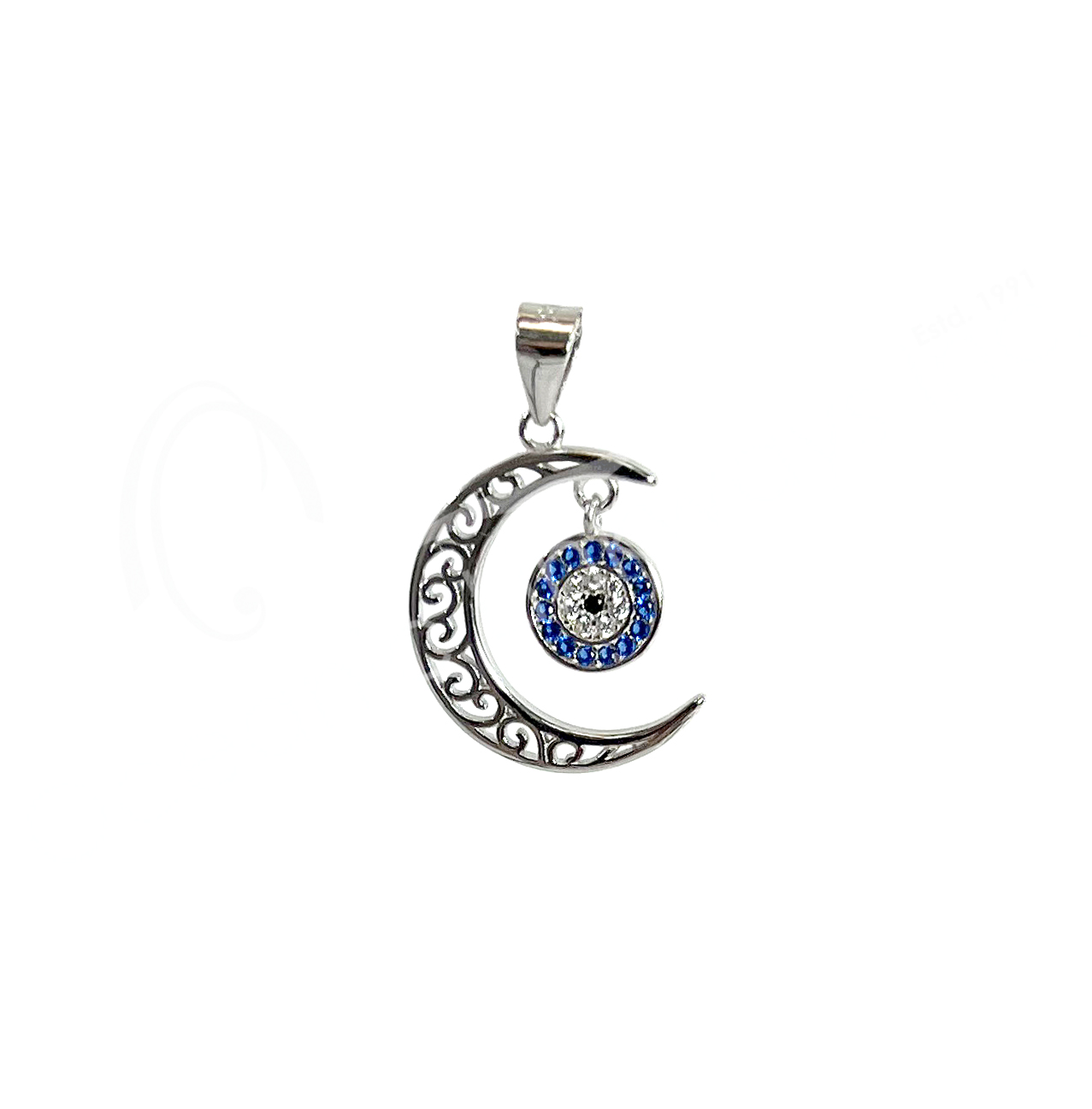 STERLING SILVER – PENDANT EVIL EYE MOON 0.85″