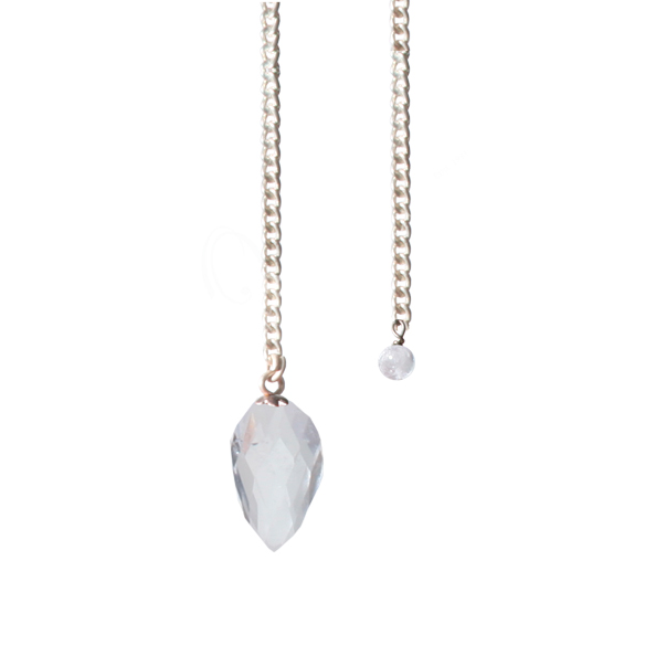 PENDULUM – TEARDROP FACETED CRYSTAL QUARTZ PLAIN CHAIN 9″L