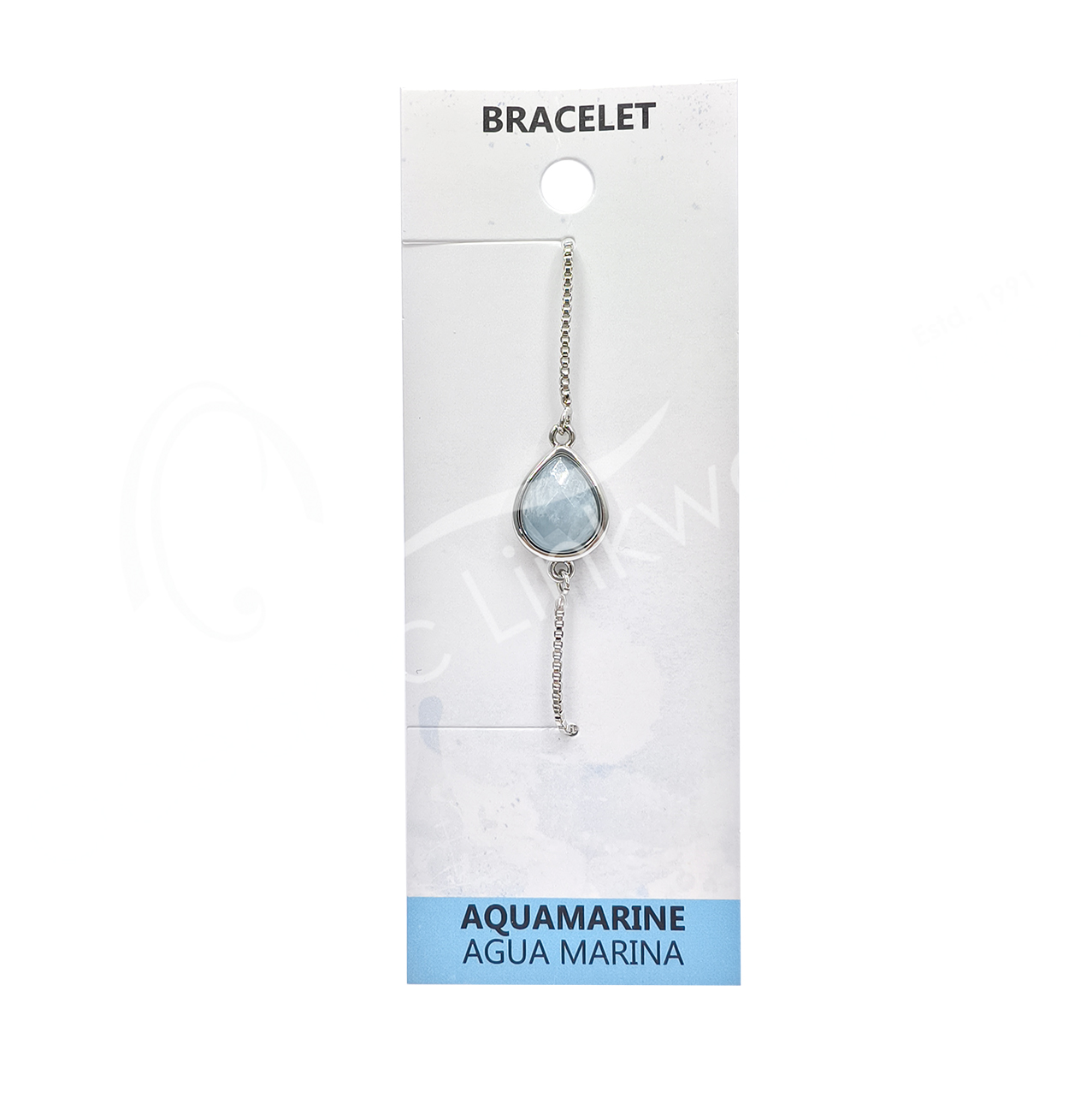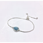 BRACELET – BRASS FACETED TEARDROP AQUAMARINE ADJUSTABLE CHAIN 10″