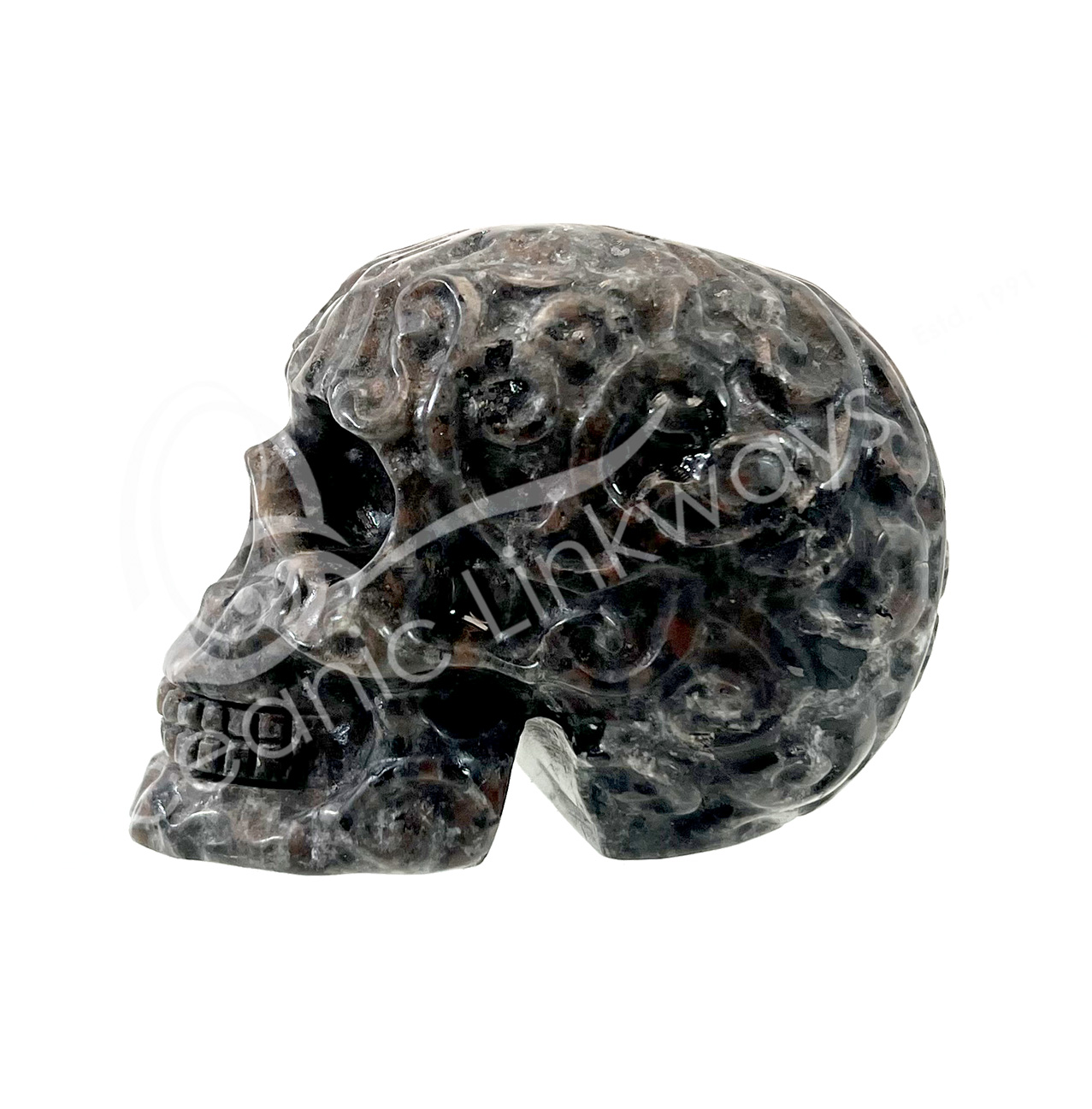 CARVING – SKULL WITH DETAILS FLAME STONE 2.75-3.5″