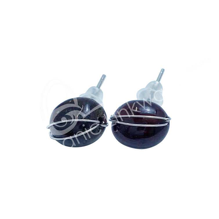 (CLOSE OUT) STERLING SILVER – EARRING STUDS GARNET WIRE WRAP 7-8 MM