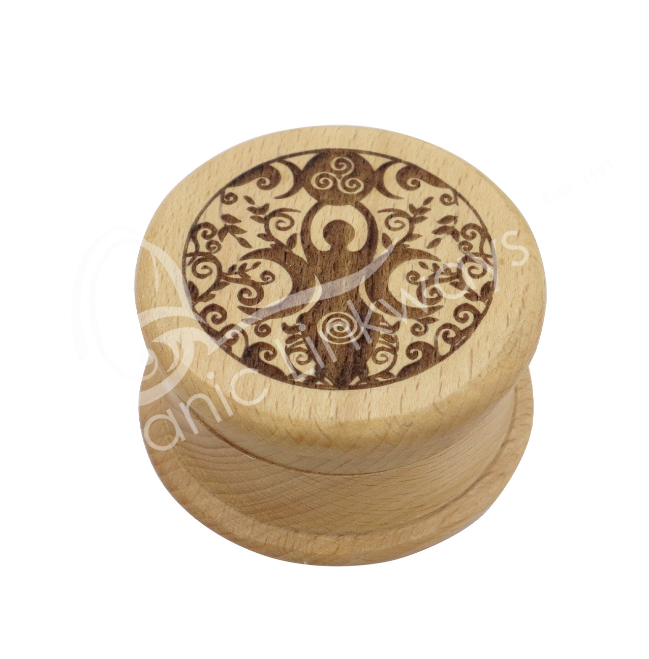 GRINDER FOR HERBS – WOOD ENGRAVED GODDESS 2.5″DIA.