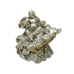 STATUE – HAPPY BUDDHA, GOLD ON MONEY FROG 3.95″L X 3.95″H