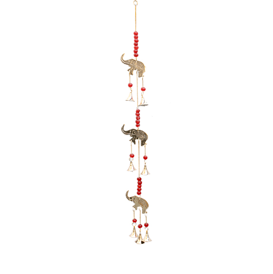 (CLOSE OUT) HANGING BELLS- 3 ELEPHANTS WITH RED GLASS BEADS 23″L