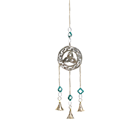 HANGING BELLS – TRIQUETRA WITH TURQUOISE FLOWER 15″