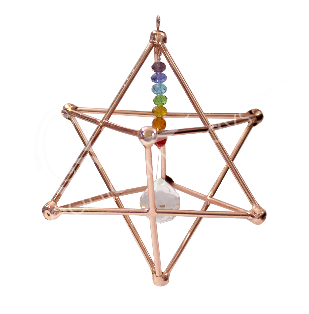 HANGING – COPPER MERKABA WITH CHAKRA CRYSTAL 4″