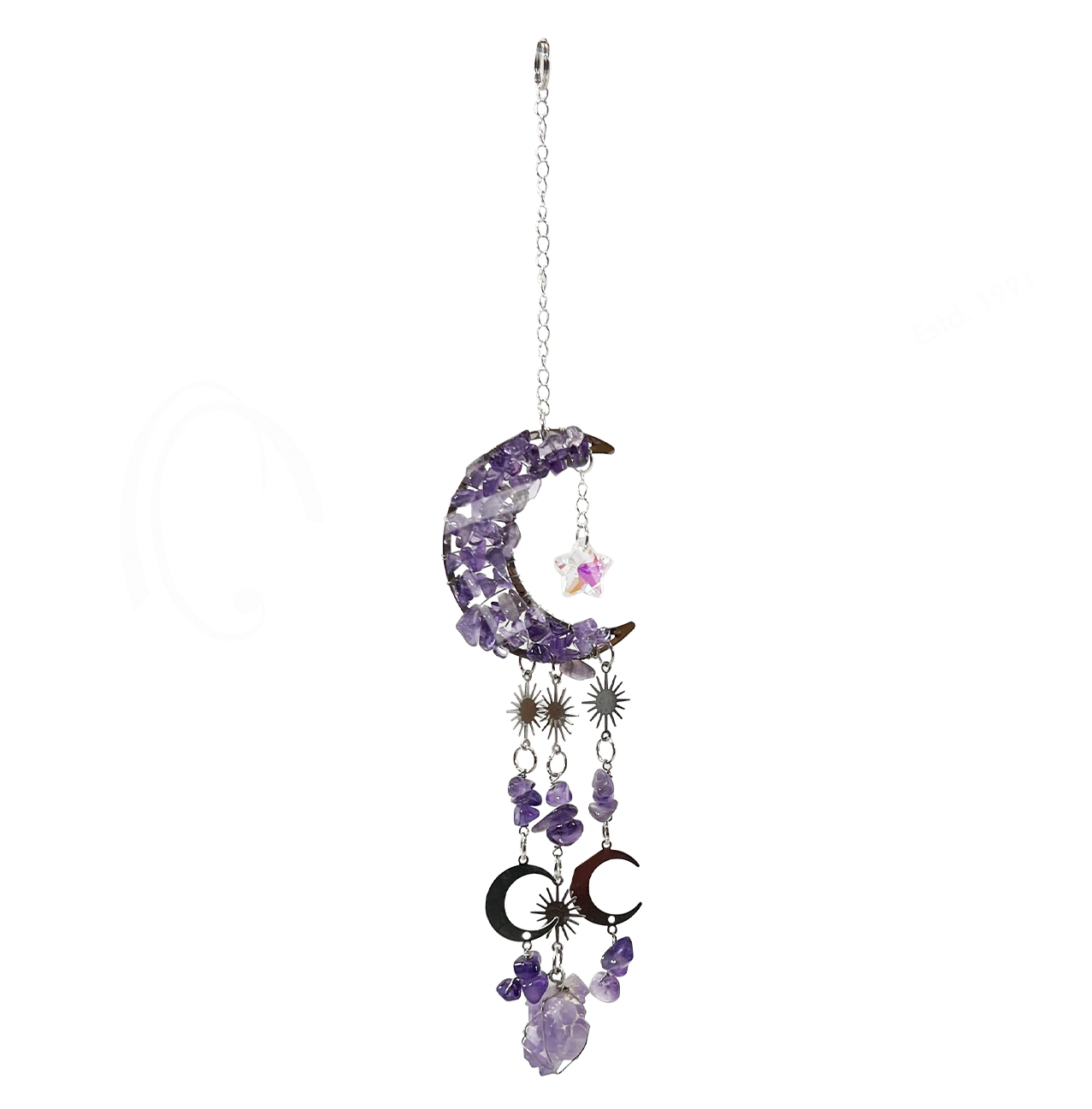 HANGING – MOON WITH AMETHYST CHIPS 8.5-9″L