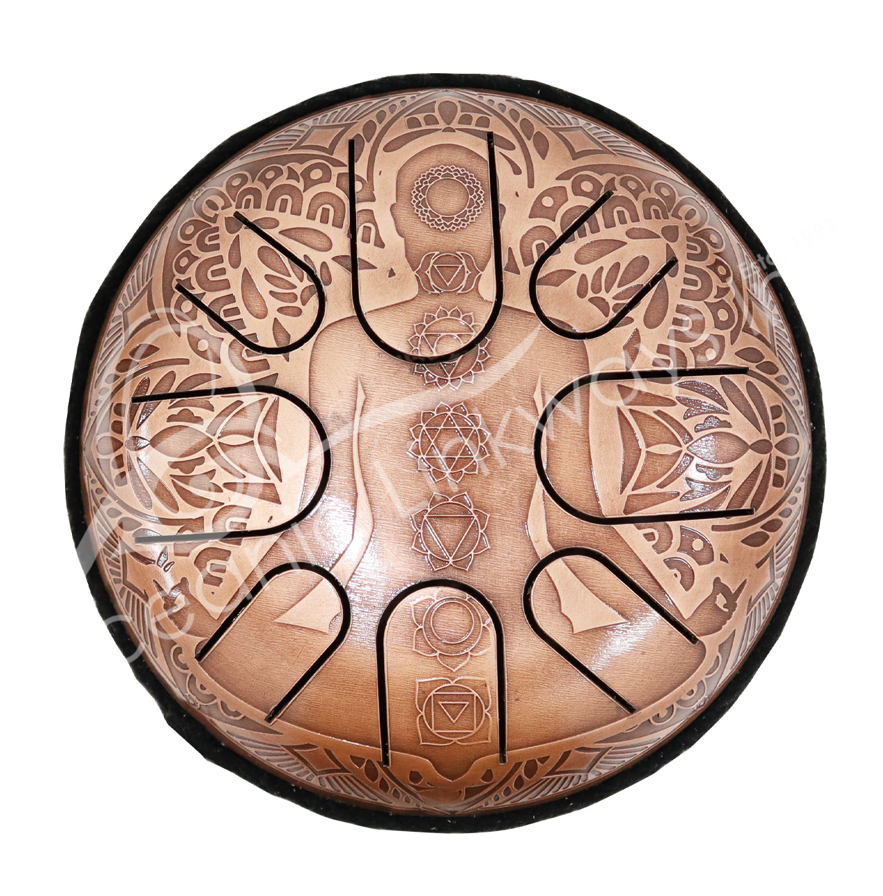 HAPPY DRUM – IRON, COPPER ANTIQUE 7 CHAKRAS 8.5″DIA