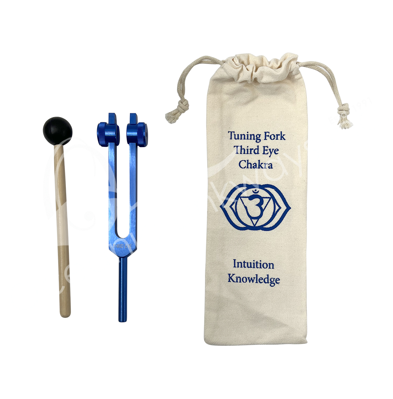 (CLOSE OUT) TUNING FORK – SPELLING ERROR THIRD EYE CHAKRA TUNED WITH STICK & BAG 7.5″L