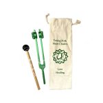 TUNING FORK – GREEN/HEART CHAKRA TUNED WITH STICK & BAG 8.65″L