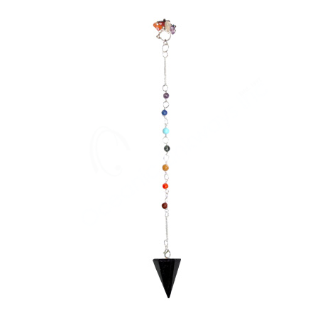 PENDULUM – HEXAGONAL TOURMALINE, BLACK CHAKRA CHAIN WITH CHIPS 12.5″L