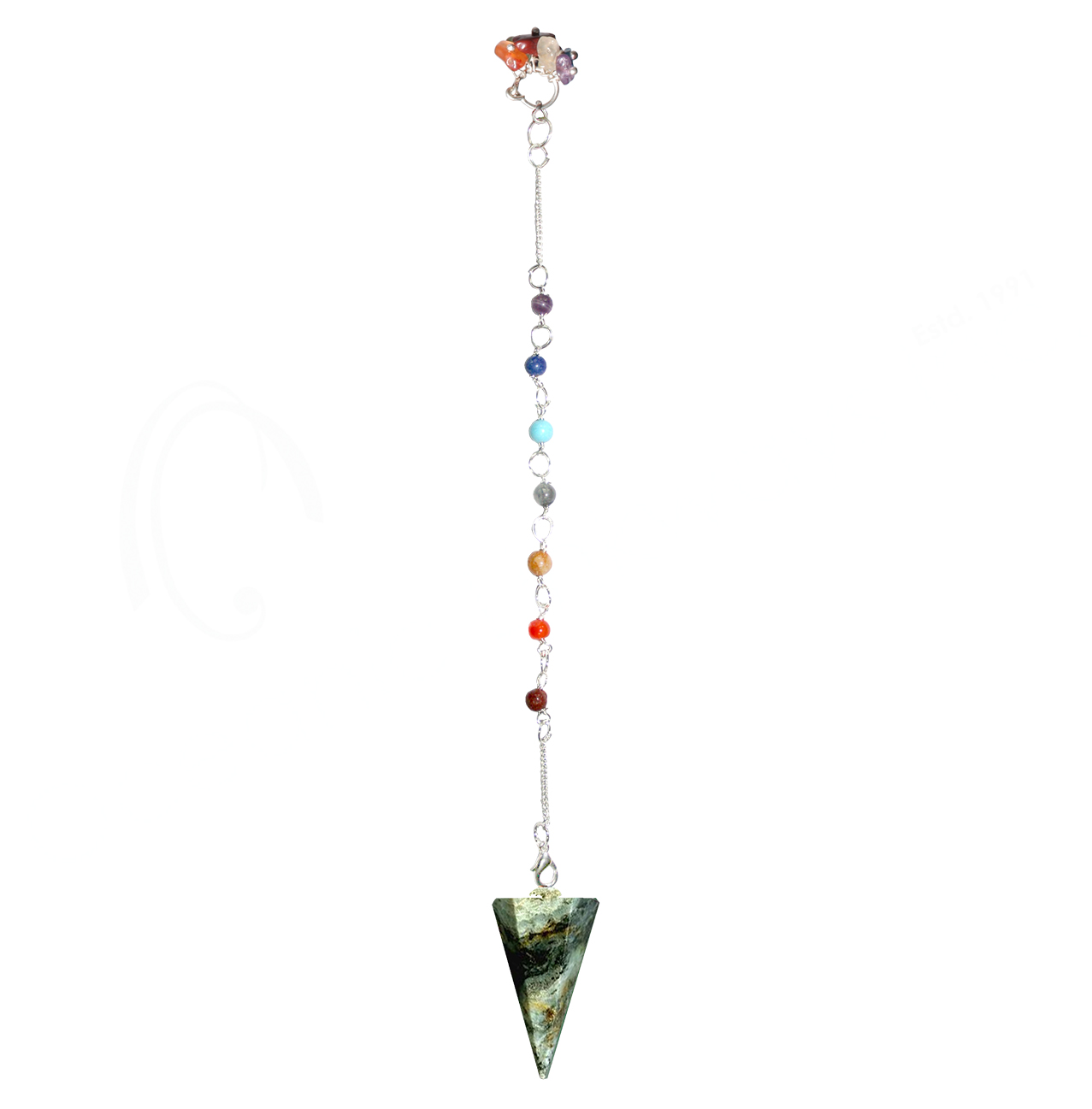 PENDULUM – HEXAGONAL OPAL, GREEN CHAKRA CHAIN WITH CHIPS 10″L
